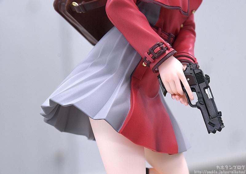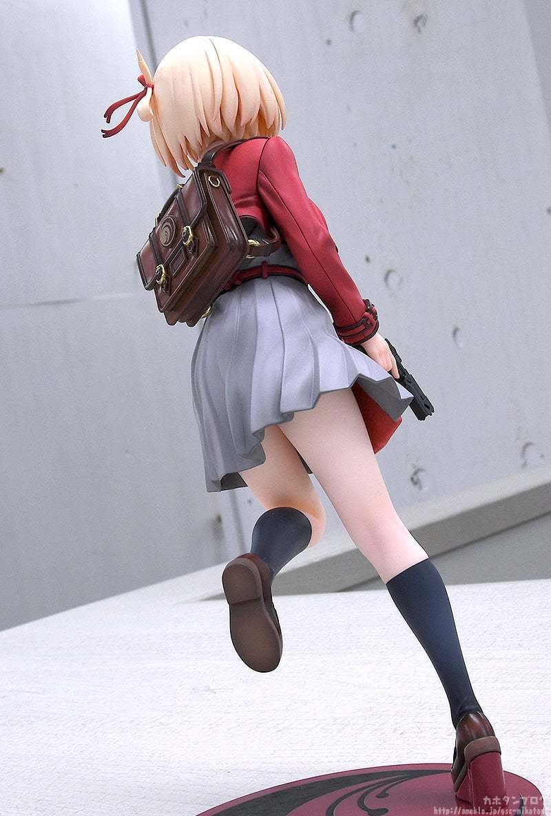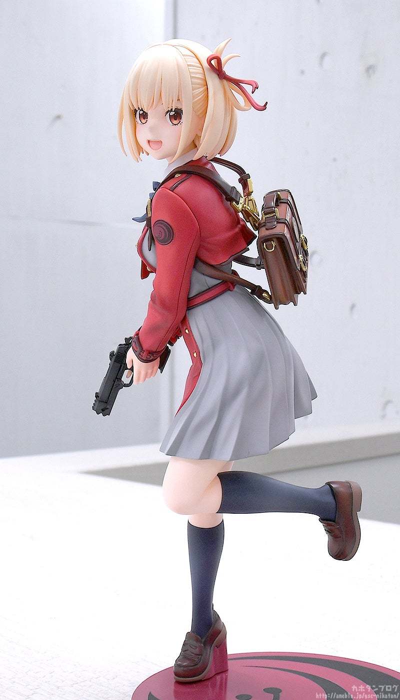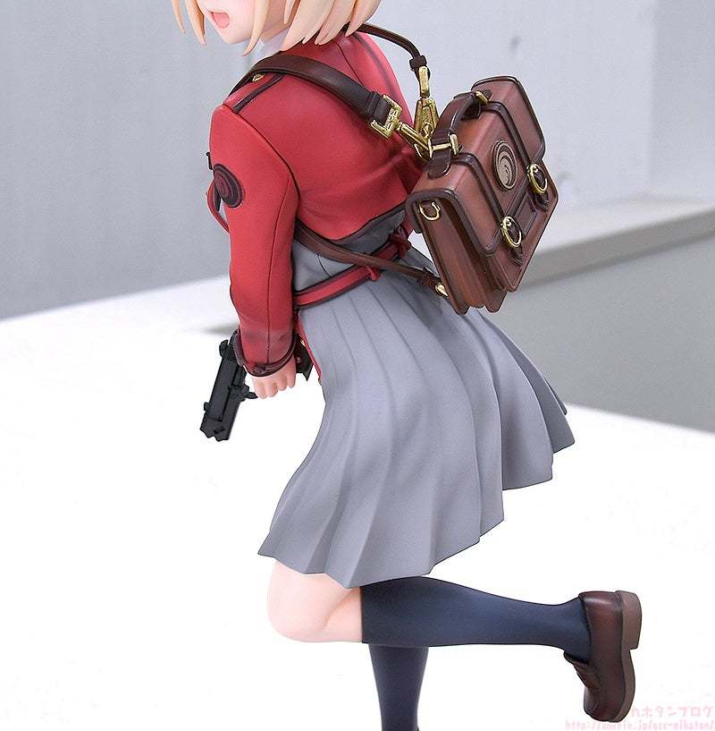 「GSC 錦木千束」 1/7 比例模型,尺寸全高約 23 公分,還原千束身穿城市迷彩服-制服的造型,並仔細刻劃由乃木坂46衣裝設計擔當-尾内貴美香(ALCATOROCK)所設計的複雜制服細節,包含排釦、腰帶與袖子等,書包的釦環...各處透過不同的塗裝來呈現金屬、皮革等材質差異。即使拿著手槍,仍擺出俏皮可愛的動作,臉上元氣的笑容更是洋溢青春感!藏不住的豐滿身材也是一亮點~