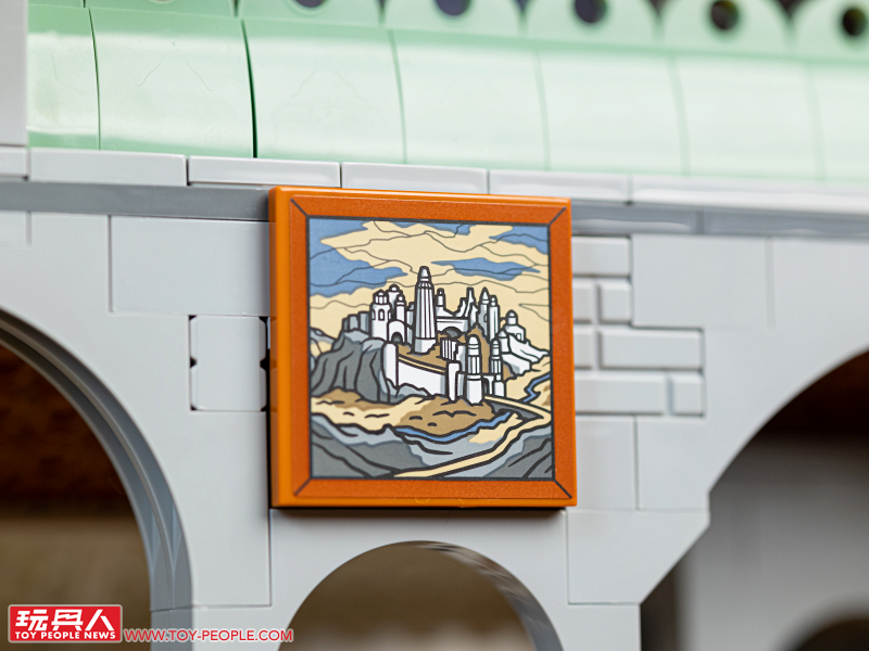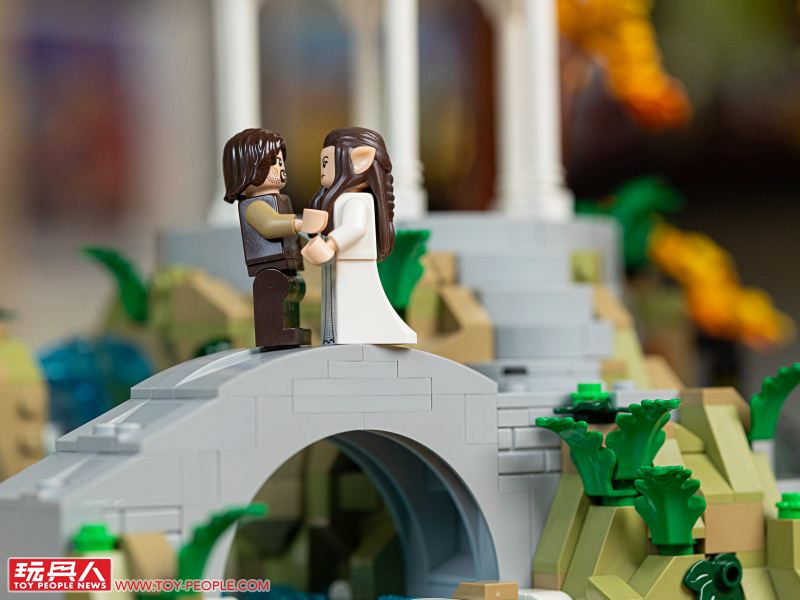 ▼ 當然少不了亞拉岡與亞玟(Arwen)在橋上的浪漫時刻,說明書裡有特別提到,為了讓樂高人偶在牆上可以安全一點,他們特地設計了幾個顆粒來固定。