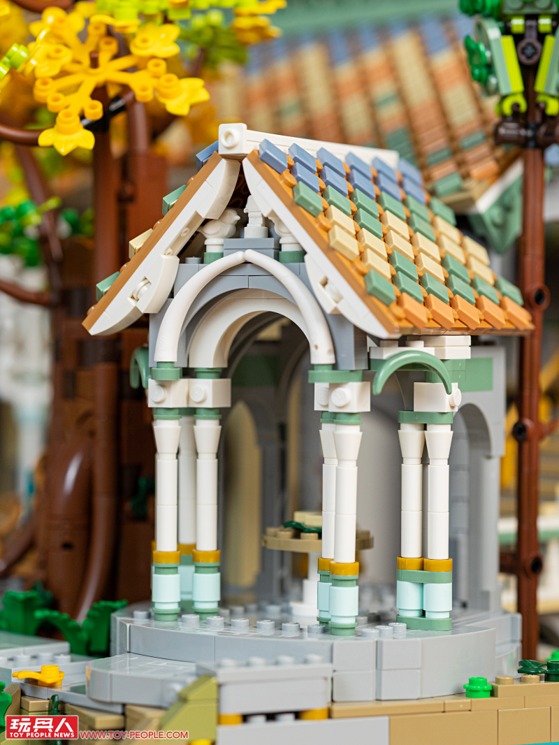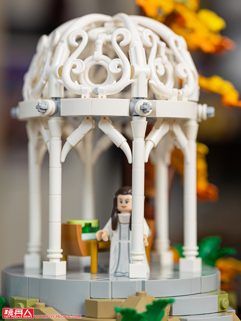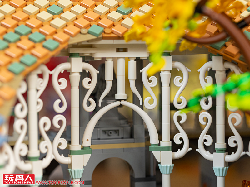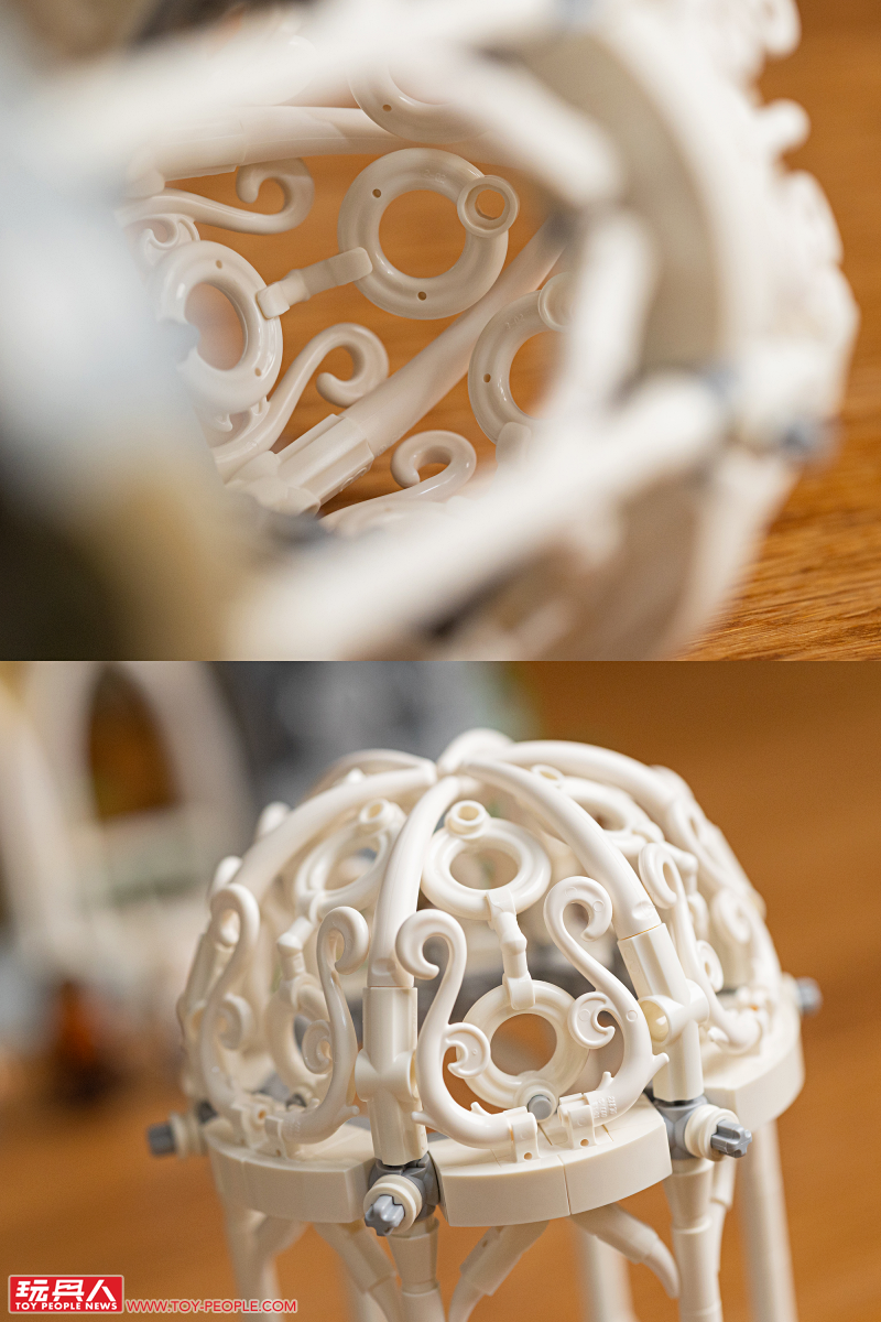 ▼ 涼亭的堆砌方式真的讓人大開眼界,不僅還原出白色裝飾的結構與細長的柱身,底部為了加固而設計的幾何結構、邊緣堆砌的方式也令人佩服不已,說明書也有提到這座涼亭的底座是這一款模型中最具挑戰性的部分。