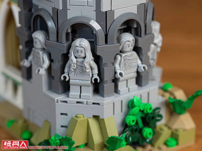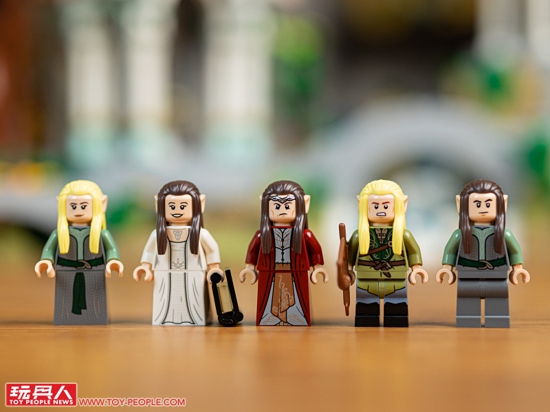 再來看到人偶部分吧!這次的 10316 總共附上 15 位人偶+ 6 個雕像人偶,這次登場的人偶在服裝、武器配件......等多處採用新印刷、新模具,精靈頭髮零件也以新材料製成,雖造型方面與舊版差異不大,但在耳朵部分展現出光亮質感,讓人感到滿滿誠意。