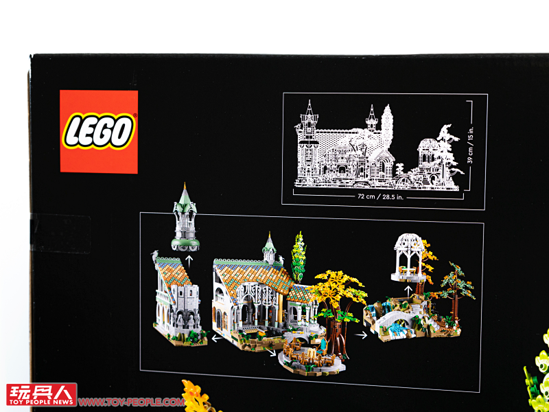 ▼ 背面同樣是黑色底,展示了樂高瑞文戴爾的另一角度與詳細規格,長度來到 72 公分簡直空間殺手。