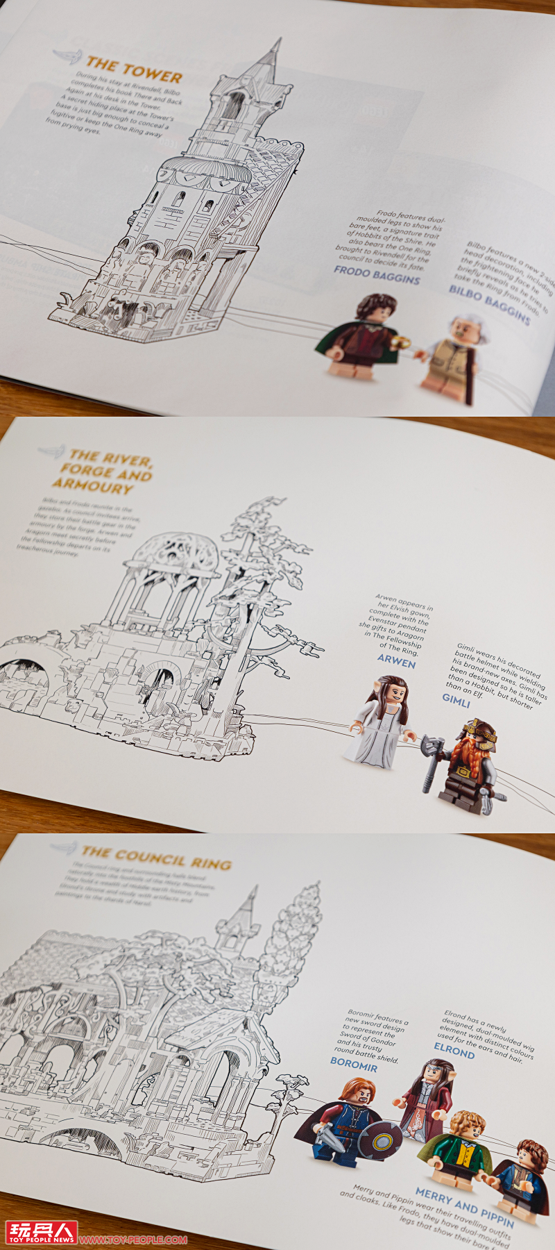 ▼ 設計出這款樂高瑞文戴爾的 9 位設計師,這規模可說是前所未見!他們參照了電影攝影棚藍圖、採用樂高人偶的規格打造出瑞文戴爾的一角,並將經典的元素融入;翻過來則是歷年來的魔戒主題盒組。