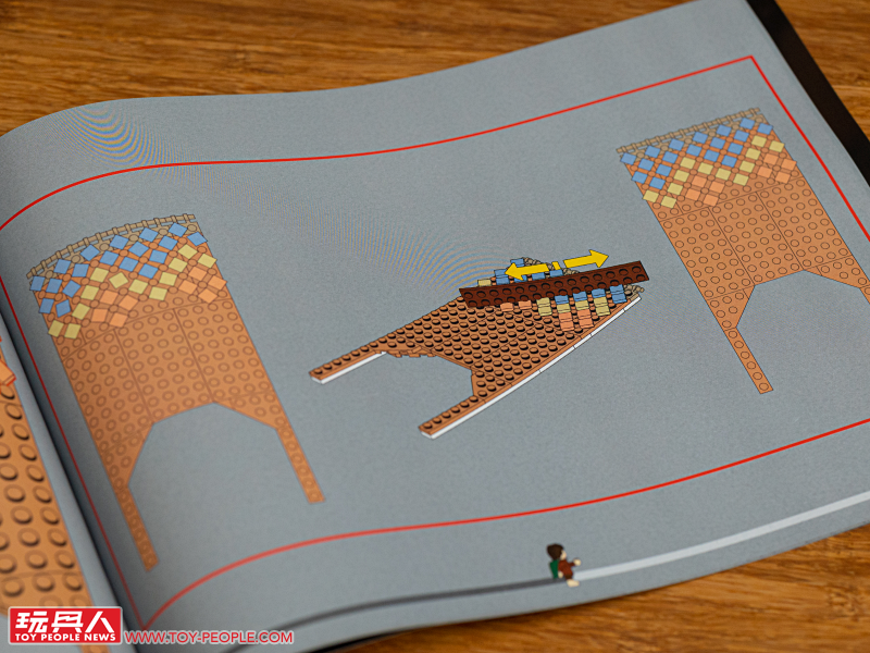 ▼ 在擔心屋頂小零件的整齊度會不會整死有對齊強迫症的人嗎?樂高這邊直接用一個酷酷的方法解決~另外,隨著組裝時間越來越長,書上的佛羅多也會跑出進度條呢!超可愛,其它本則是換人跑。
