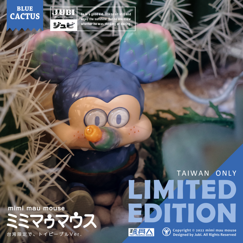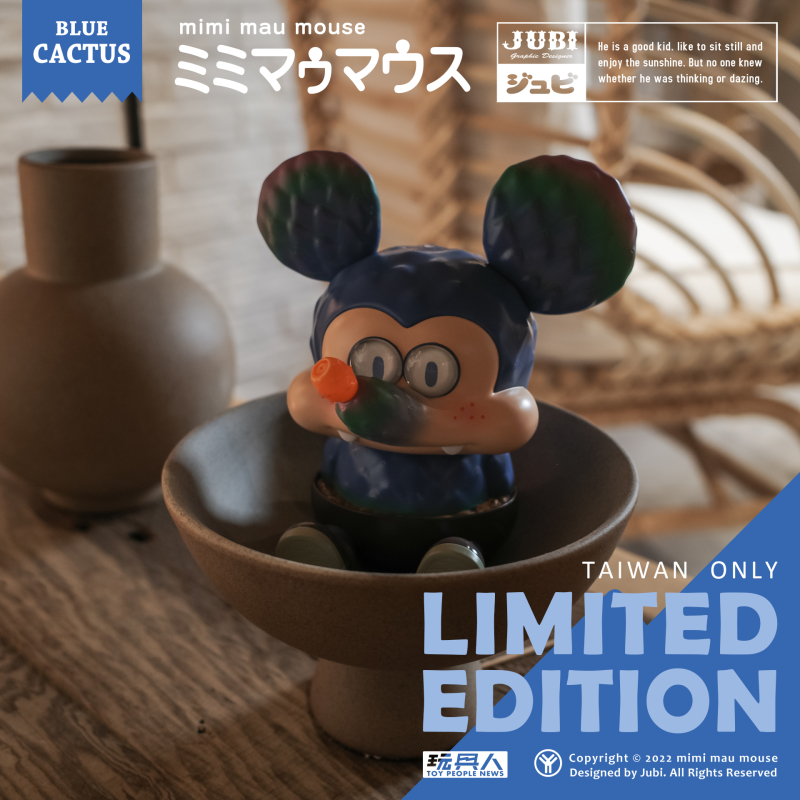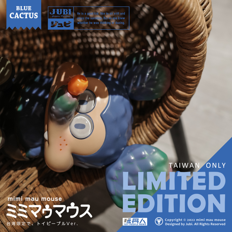 本次聯名推出的「米米冒冒斯 玩具人限定版Ver.」,以美到冒泡泡的 Blue Cactus 配色呈現,身體換上淡淡的土耳其藍,大大的耳朵與鼻子處更是施以由綠到粉紅的漸層,營造出植物獨特的自然色調~橘紅色的漿果鼻子、膚色的臉部與雙頰的小腮紅,可愛度更加倍!再加上保留手作感的一雙大眼睛這樣呆呆地看著你...絕對是玩具人必須入手的限定款式!馬上手刀參加抽選吧!