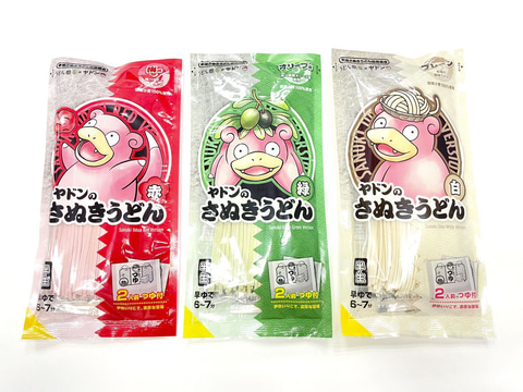 一次推出三款,效法初代電玩-《寶可夢紅/綠/藍》的三配色給各位寶可夢粉一個懷舊又有趣的包裝設計。紅色為梅子口味、綠色則是橄欖味,白色則是一般原味,每一包約為兩人份,將會作為香川縣當地的土產販售。