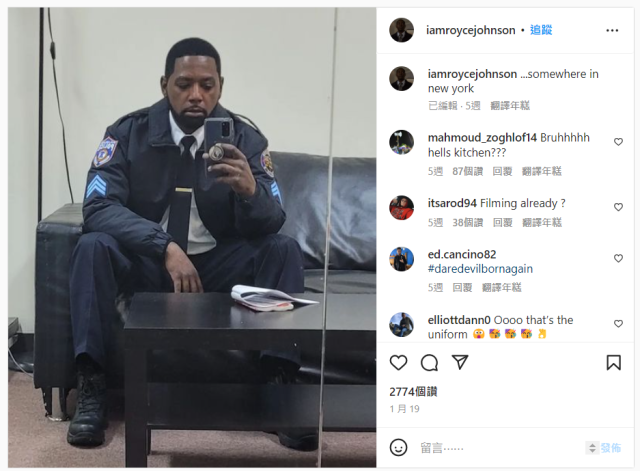 除了查理考克斯以外,曾在Netflix系列演出紐約警察「布雷特」的演員 羅伊斯強森 (Royce Johnson) 上個月也在Instagram發布了他身穿警察戲服的自拍,寫著:「紐約某個角落......」