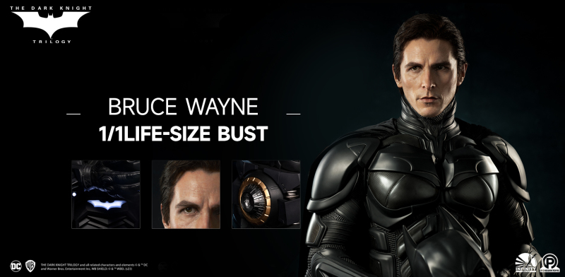 上海的雕像廠牌開天工作室(Infinity Studio)繼「小丑」後,再度攜手 Penguin Toys,推出出自《蝙蝠俠:黑暗騎士》的最新作:克里斯汀·貝爾「蝙蝠俠」1/1 比例半身胸像!全球限量 500 體,預計 2024 年第一季發貨。