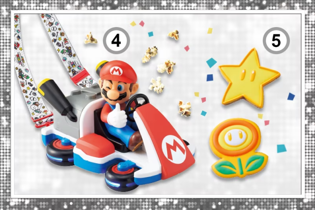 《瑪利歐》則有賽車造型的爆米花桶,以及無敵星 & 火花造型的糖霜餅乾。