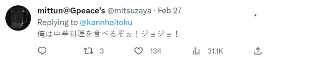 ▼ 吃我的中華料理吧,JOJO ( ? )