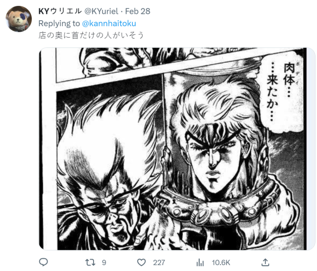 相信不少人都在國外去過中華料理餐廳,通常都會有充滿中華氣息的擺設與裝潢讓大家更有用餐氛圍。不過最近推特有位推主背徳漢 ( @kannhaitoku ) 秀出了他到中華餐廳用餐的擺設,可以看到牆壁上有許多傳統戲曲的臉譜,這不要緊,但怎麼亂入了個《JoJo的奇妙冒險》的石假面呢 XD。這也吸引不少網友熱議,嘲諷表示 : 「店長是吸血鬼吧!」