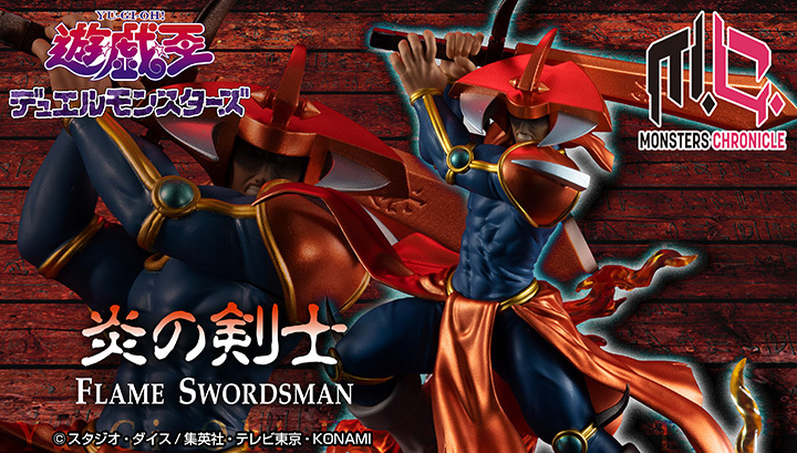 日本模型商 MEGAHOUSE 所推出的中低價位小尺寸怪獸模型新系列「MONSTERS CHRONICLE」,繼「青眼白龍 / 真紅眼黑龍 / 昆蟲女王」後,再度發表出自《遊戲王》的第二彈商品「炎之劍士」,參考售價為 7,040 日圓,預計於 2023 年 09 月發售。
