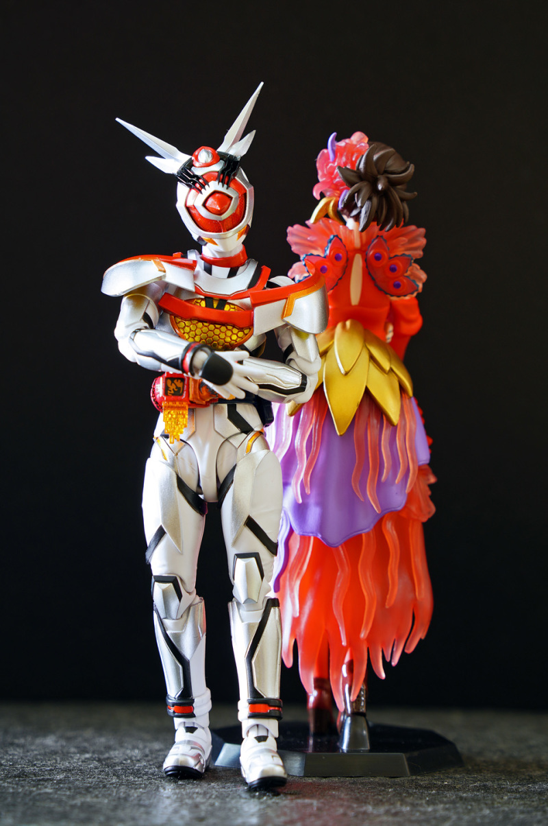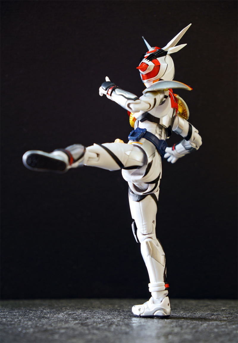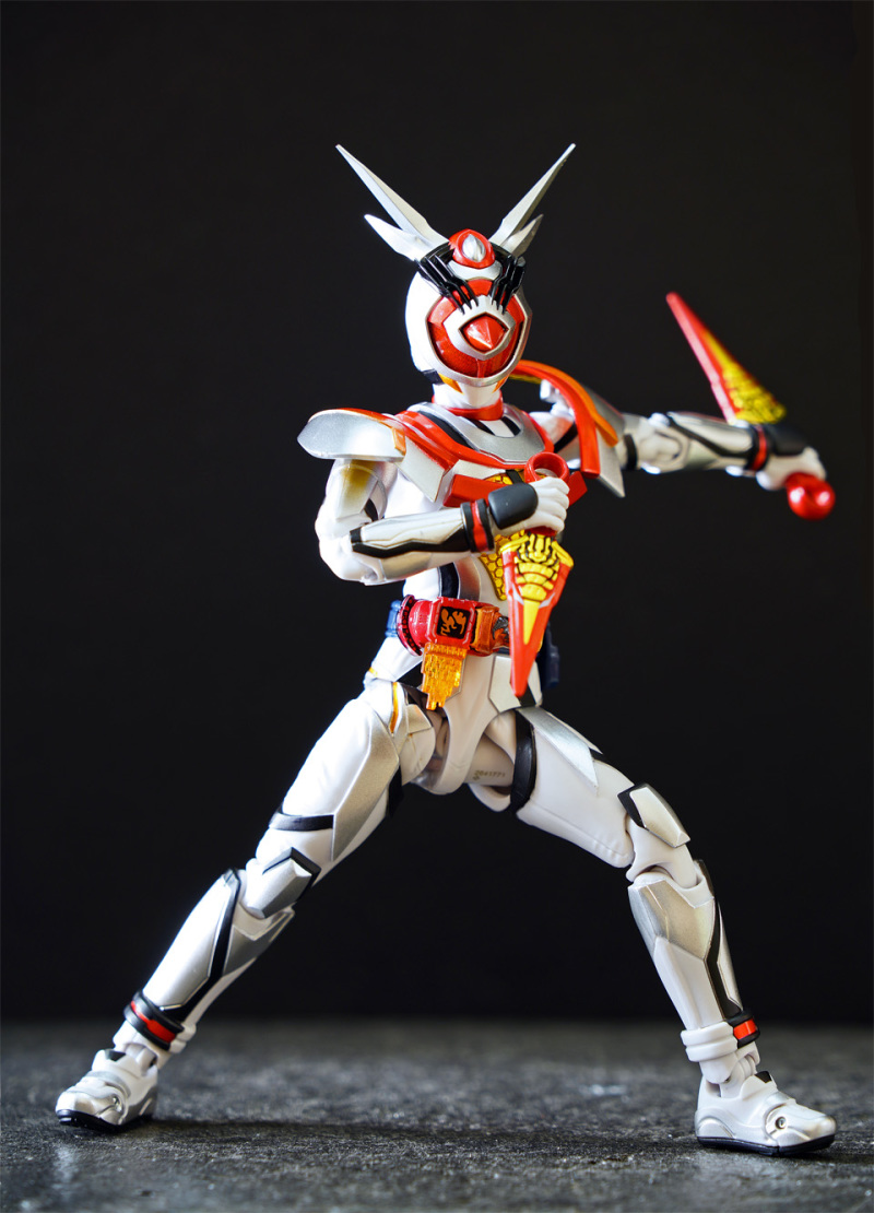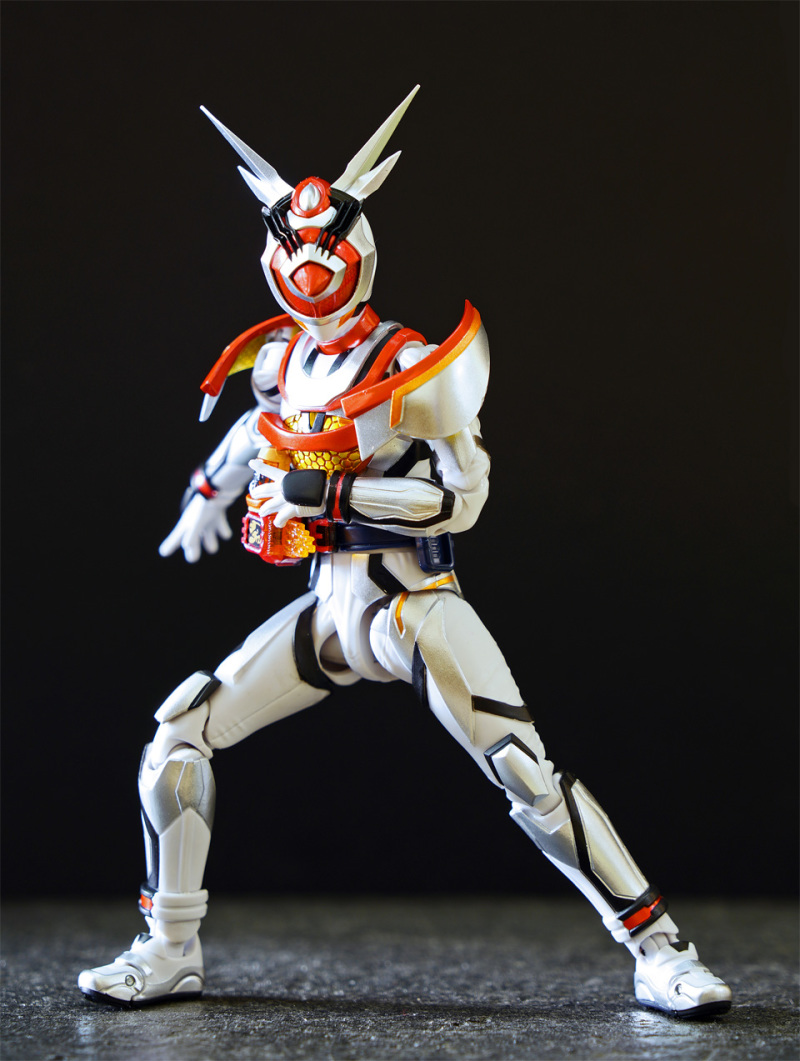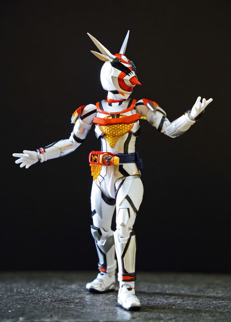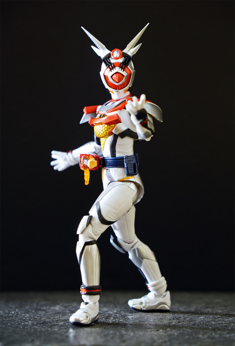 SHF 主體高約 145 mm,全身以白、橙、黑、黃色為為主。配件不多,主要是交換用手型及 1 對苦無 。相比其他幪面超人可玩性只屬一般!