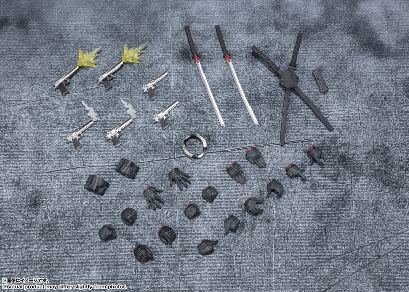 「S.H.Figuarts 死侍(Deadpool 2)可動人偶」,以前版本的 S.H.Figuarts 死侍為基礎,結合《死侍2》的重新設計,將戰衣換上了經歷戰鬥後沾染灰塵、較低亮度的暗紅配色,先前令粉絲失望的槍配件,這次也終於記得帶了!附帶槍部件和槍托部件,可以通過兩種特效件再現胡亂掃射的動作場景;附屬的雙刀更可以再現子彈被斬成兩半的場景。豐富的手勢零件與替換眼睛,能賞玩各種凡人又搞笑的動作~還有抑制變種能力的束能項圈等配件!