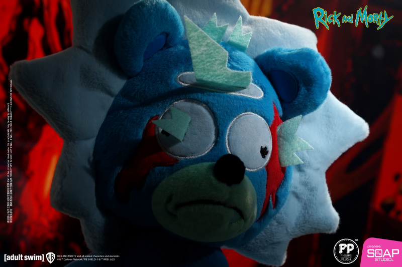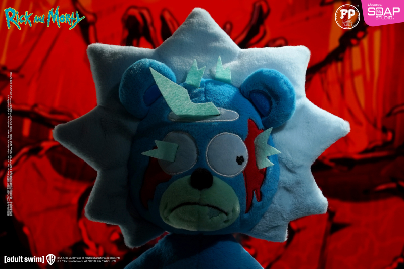 這一款「泰迪熊瑞克」毛絨可動人偶高度來到 30 公分,採用毛料、搪膠......等複合式材料製成,藉著內置的骨架讓本作在腰部、四肢皆具備可動性,除了充分還原劇中的藍色調性與毛絨絨的質感之外,還可將頭套自由取下,把玩呈現出瘋狂笑容的瑞克!Soap Studio 也同步推出了「超級瘋狂隱藏版」,不只在布偶熊的頭部扎進玻璃、佈滿鮮血,拿掉頭套之後裡頭的瑞克一樣也是鮮血直流,越看越瘋,抽到隱藏版的機率官方表示為 12.5%,推薦給喜歡《瑞克和莫蒂》的各位玩具人啦。