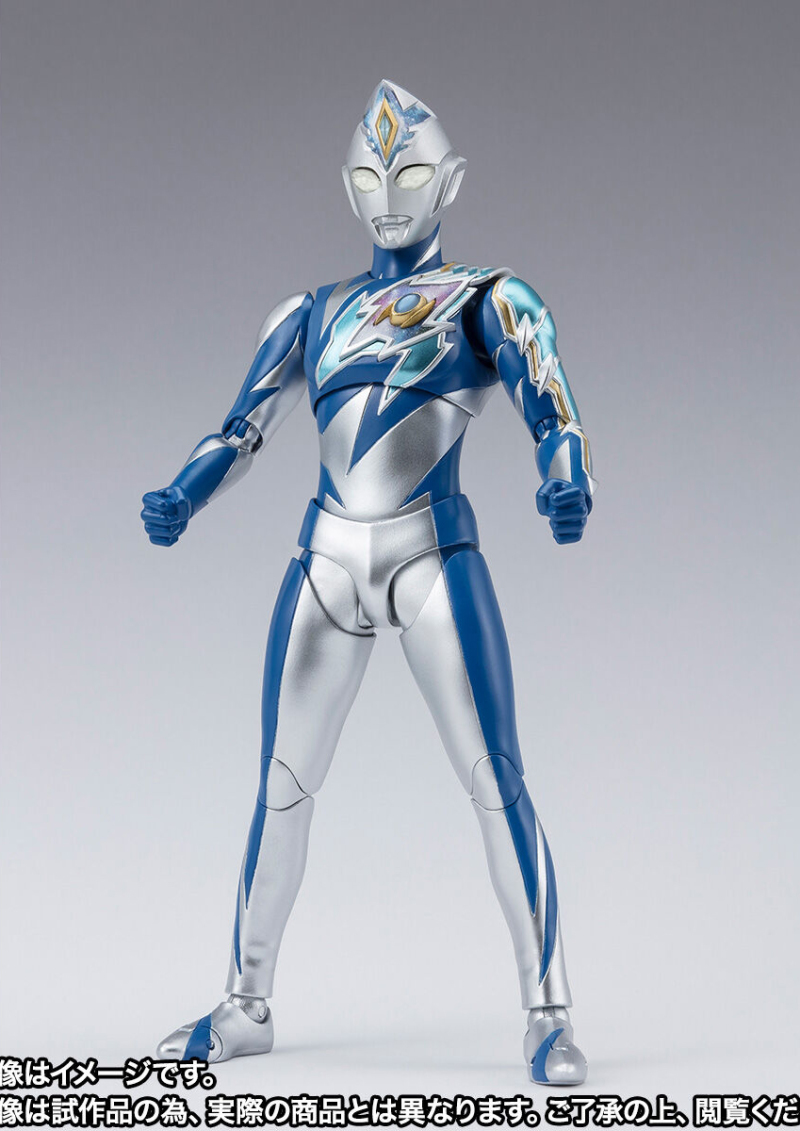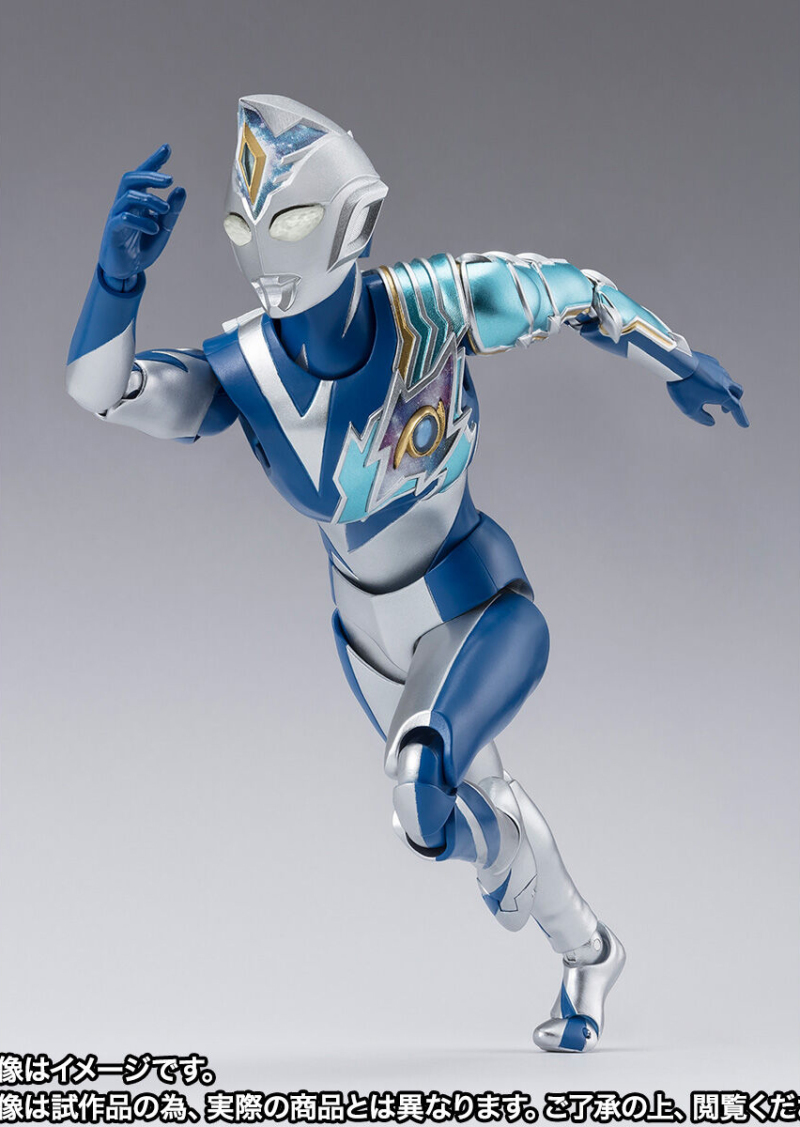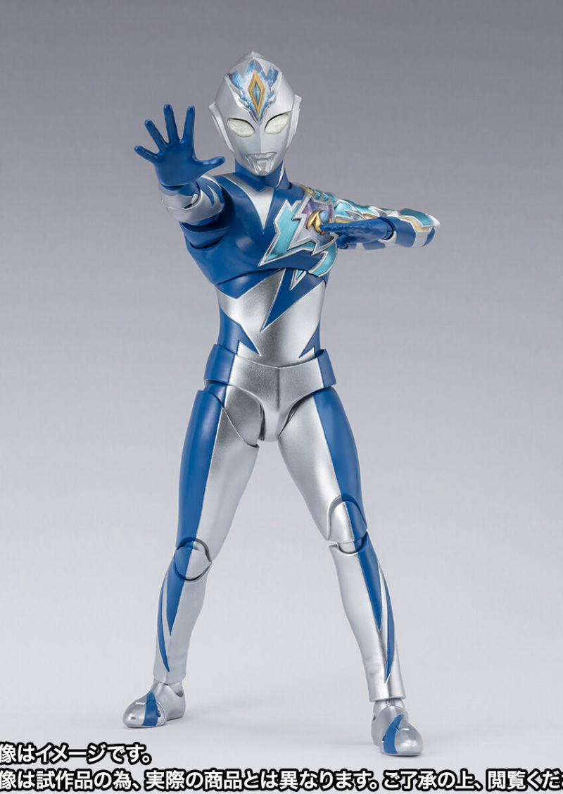 此次商品化的則是具備強大超能力與速度的奇蹟型,由圓谷製作造型部門 LSS 徹底監修,再現特徵的銀藍色與非對稱造型,頭部與胸口的宇宙圖樣則藉由數位上色技術表現。整體可動設計則與閃光型相同,具備靈活且不破壞造型完整性的可動關節,能夠搭配必殺技「雷亞琉特波動」特效零件與多種造型手掌,把玩出劇中的戰鬥場景!