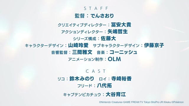 而負責開發《寶可夢 朱/紫》改編動畫的製作團隊名單,也在這一次的預告影片當中同步釋出。監督的部份是由參與過《JoJo的奇妙冒險 石之海 Part.2》原畫的傳沙織擔任,而創意導演與動作導演則是分別由富安大貴、矢嶋哲生負責,另外系列構成則是為佐藤大擔任。