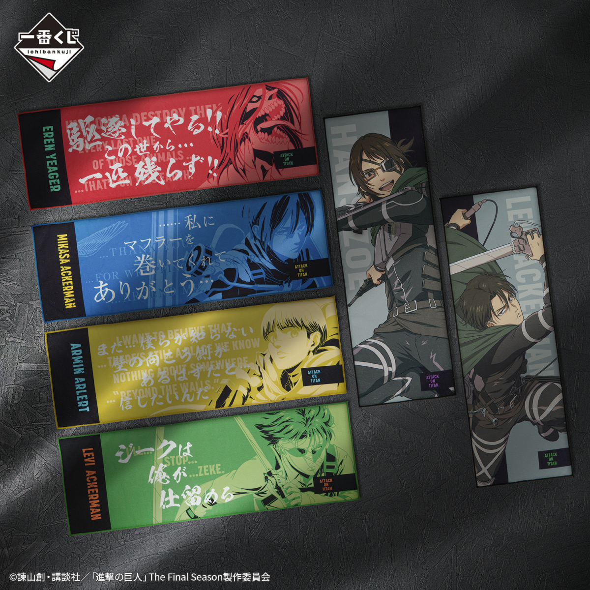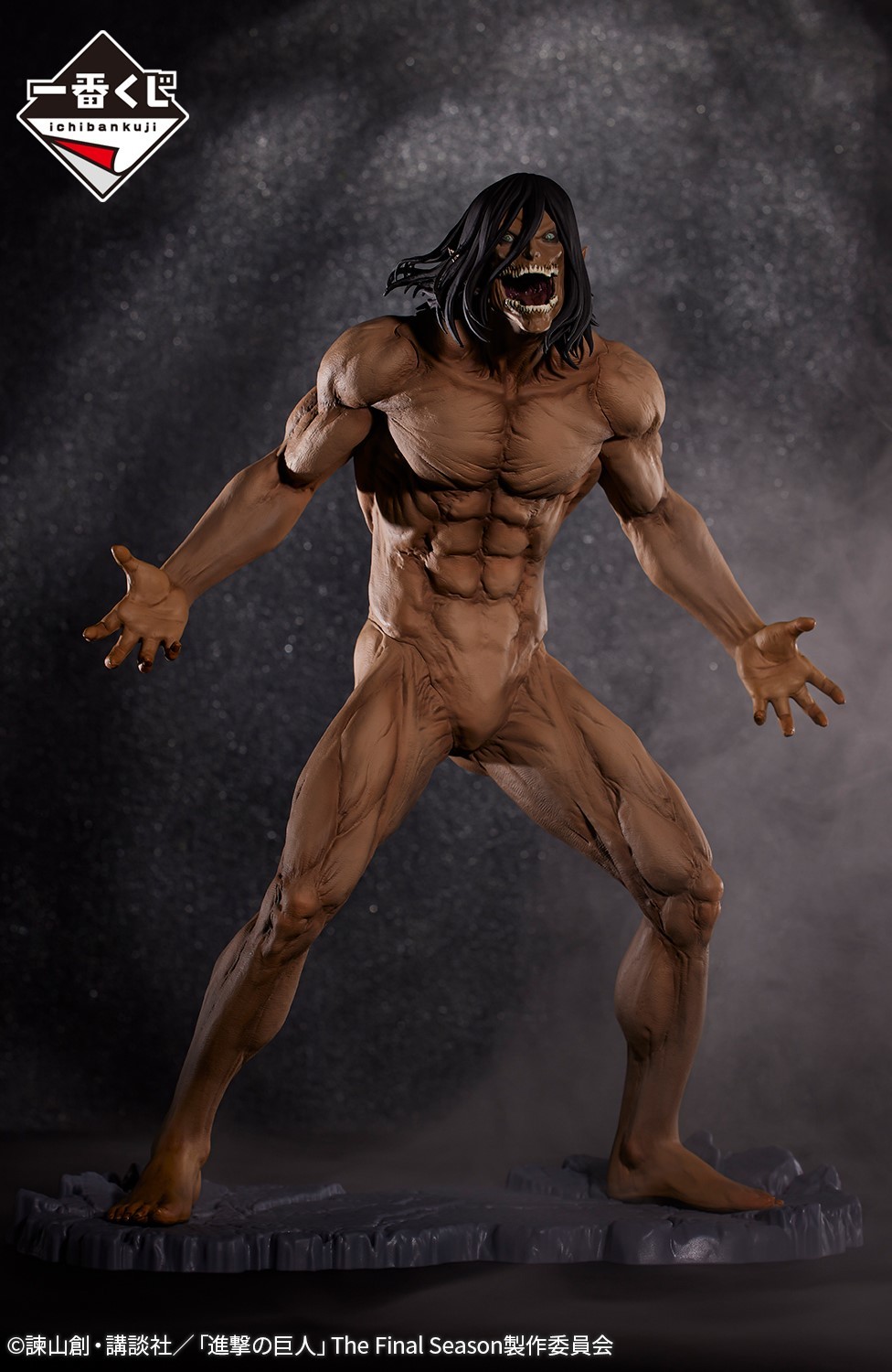 「一番賞 進擊的巨人~追尋自由~」採用魄力尺寸的 MEGAIMPACT 系列,搶先釋出了 A獎的MEGAIMPACT 艾連‧葉卡 巨人Ver. 角色模型,全高達 30 公分,展現出巨人化的份量身形與強大氣勢,全身的肌肉紋理與陰影塗裝更是一大看點!B獎的艾連‧葉卡、C獎 里維!D獎、E獎則是漢吉與里維的大型壓克力立牌,另外還有 F獎 毛巾、G獎 海報 、H獎 壓克力立牌,以及Last One獎 里維Last One ver.等精彩的獎品~