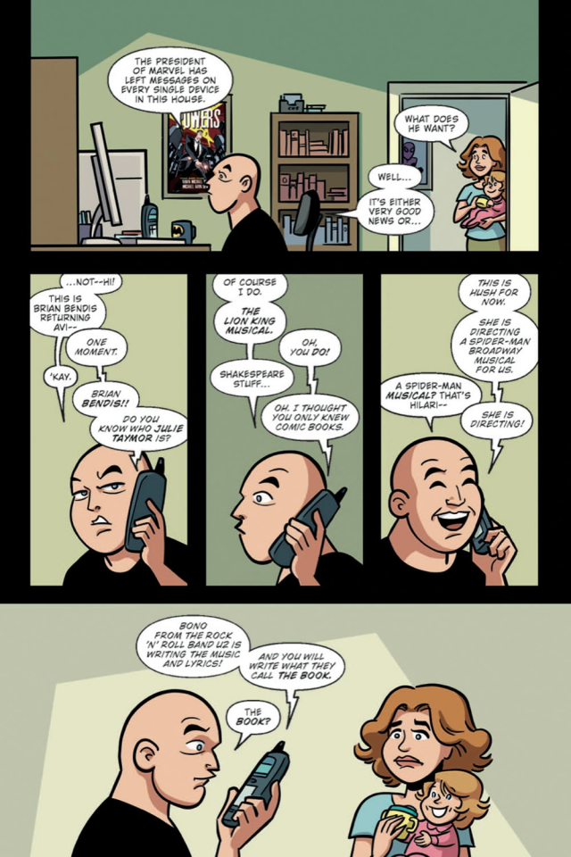 曾經參與《秘密戰爭》、《秘密入侵》 等無數漫威漫畫的作者 布萊恩·邁克爾·本迪斯 (Brian Michael Bendis,上圖) 也曾是《蜘蛛人:終結黑暗》的編劇團隊之一。他曾經在2000年推出過一部名為《財富與榮耀》(Fortune and Glory) 敘述自己在好萊塢闖盪的自傳式漫畫小說,如今他將推出第二部《財富與榮耀:音樂劇》將他參與音樂劇的經歷娓娓道來。