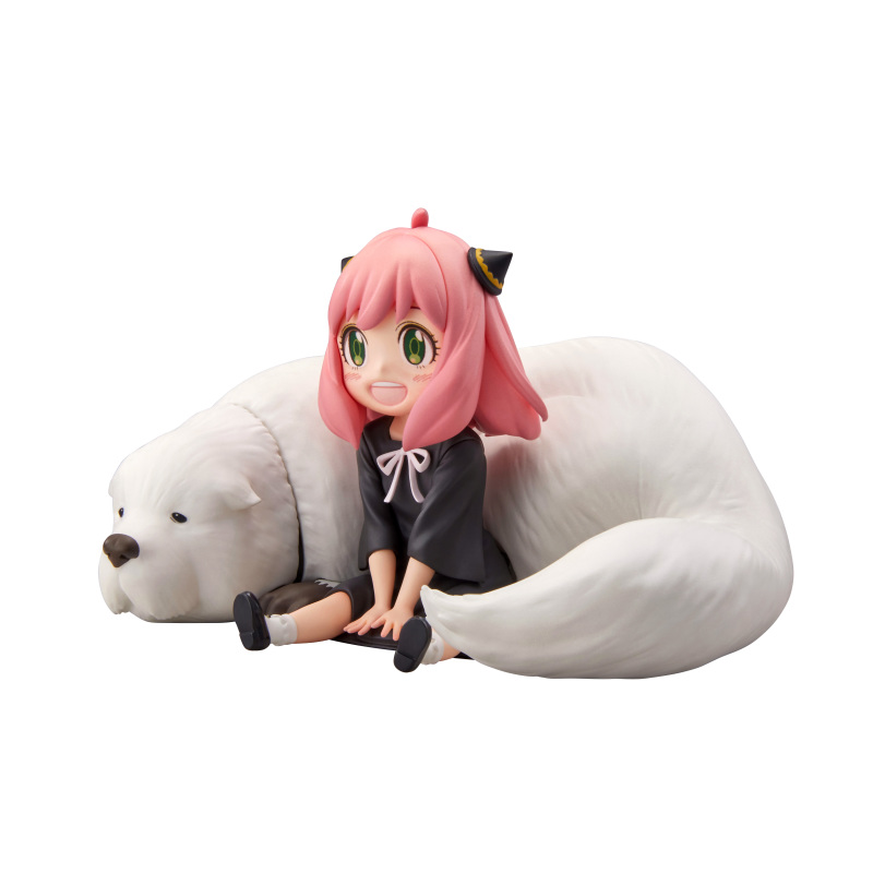 SEGA PRIZE「Chokonose 安妮亞&彭德」景品,大狗狗彭德躺在安妮亞身邊,看起來非常放鬆又愉快的造型呈現!可愛的安妮亞張著水汪汪大眼,臉上的表情相當開心,小小的身體依在彭德的身軀旁;彭德則是刻劃出蓬鬆的毛髮與安穩的睡姿,形成女兒加上狗狗的超萌組合!