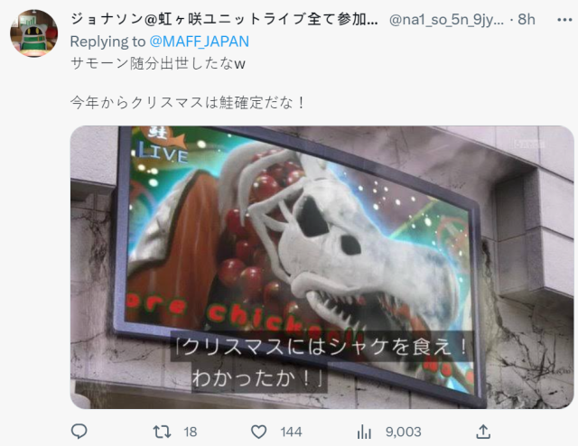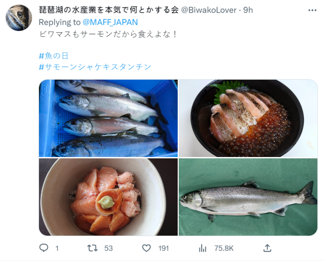 不過推特上的文内是慶祝「魚之日」,但希望大家多吃鮭魚,不知道沙蒙心理怎麼想 ( ? )