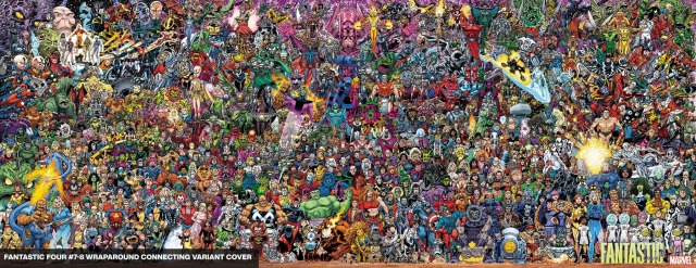這個封面上肯定有你所能想到的每一位驚奇四超人和未來基金會(Future Foundation)的成員、反派角色或只是客串的人物。