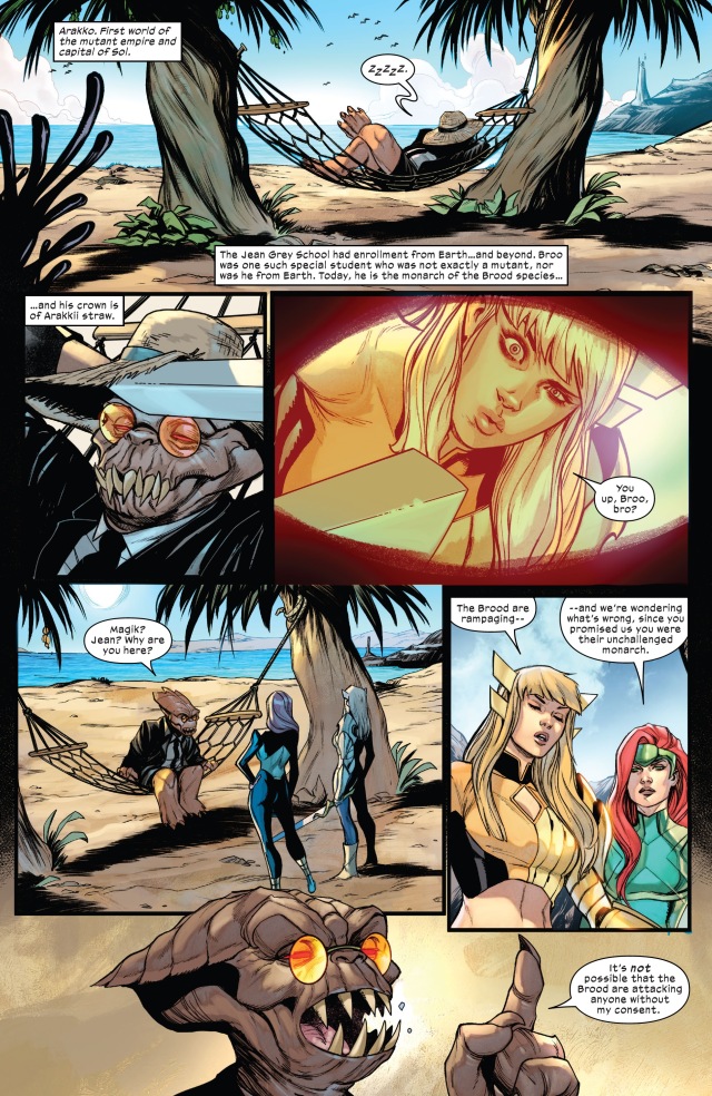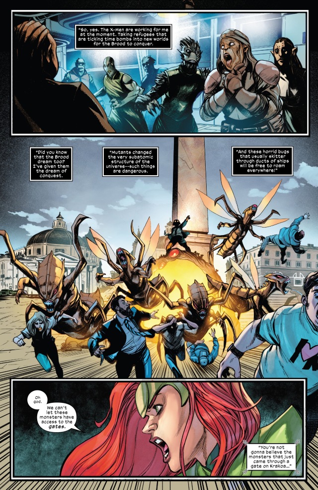 但是理論上,布魯應該對於自己的子民有著絕對的控制,而牠自己本人也是X戰警的一員,沒道理主動去做壞事才對。但是偏偏孵化者們又真的開始暴走,甚至寄生了獨眼龍(Cyclops)的宇宙海賊父親「海盜船」(Corsair),這到底是怎麼一回事呢?