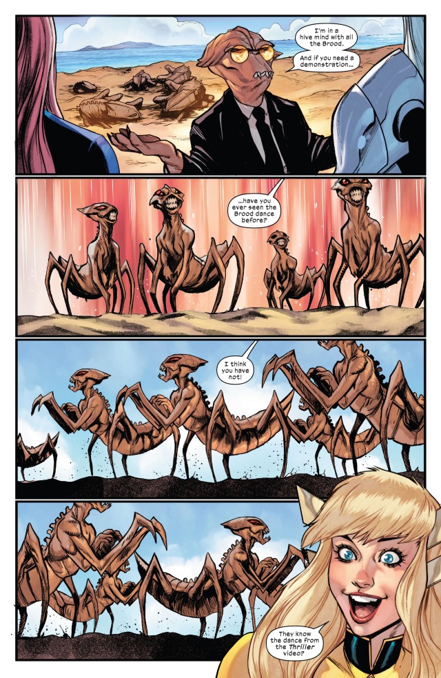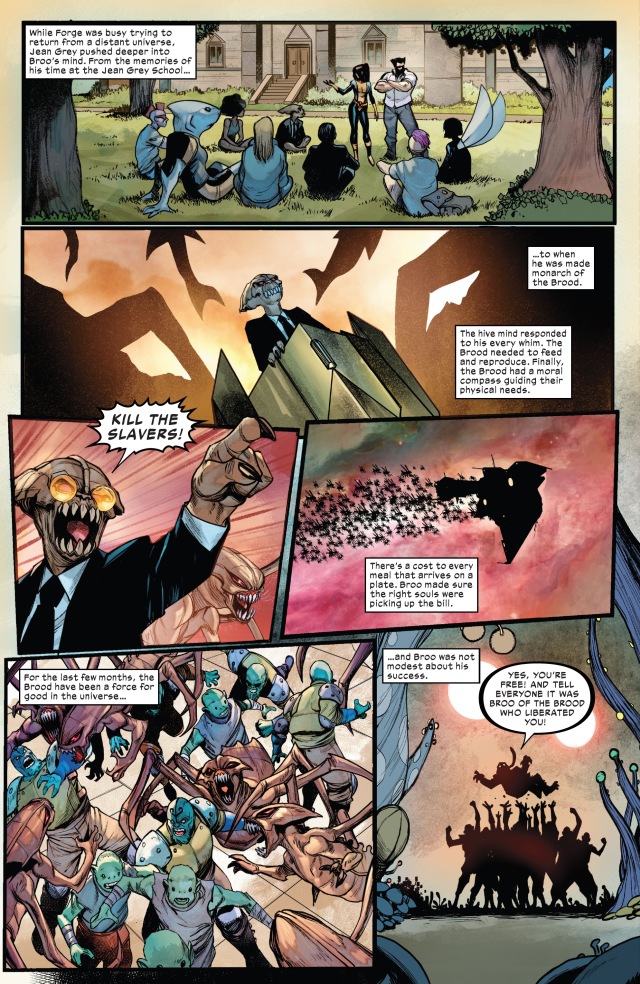 之前曾經提過,現在漫威漫畫的《X戰警》和《驚奇隊長》兩部連載正在進行久違的連動故事《孵化者的復仇》(Revenge of the Brood),講述漫威版的異形種族「孵化者」(Brood)掙脫了現在整支種族的頂點,孵化者之王布魯(Broo)的控制兒再度開始在宇宙間大肆屠戮和吞噬。