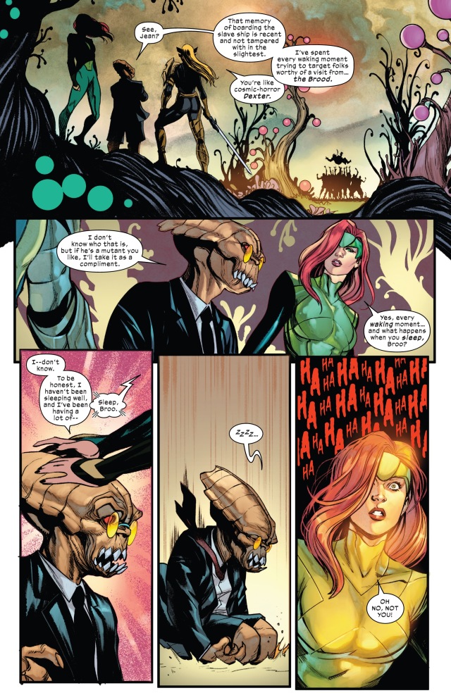而現在X戰警的主力隊員們在太空中進行救援任務這件事情也是夢魘的計畫,因為它需要X戰警去把那些內藏了孵化者的難民們帶上船送到別的世界去擴張!