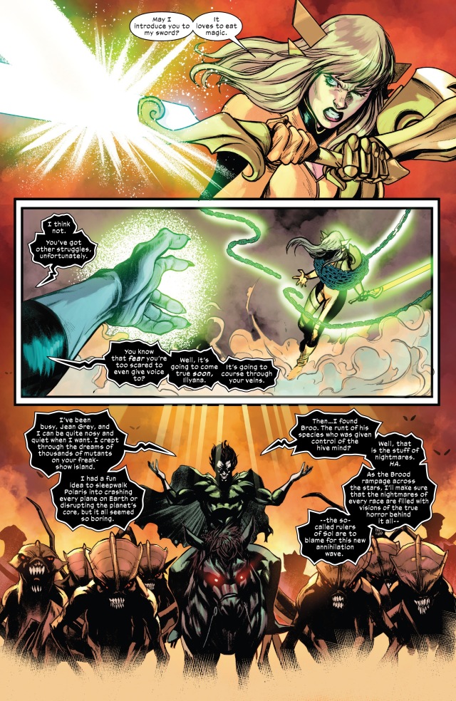 為了搞清楚這一點,驚奇少女(Marvel Girl)和秘客(Magik)兩人便直接去找牠對質。