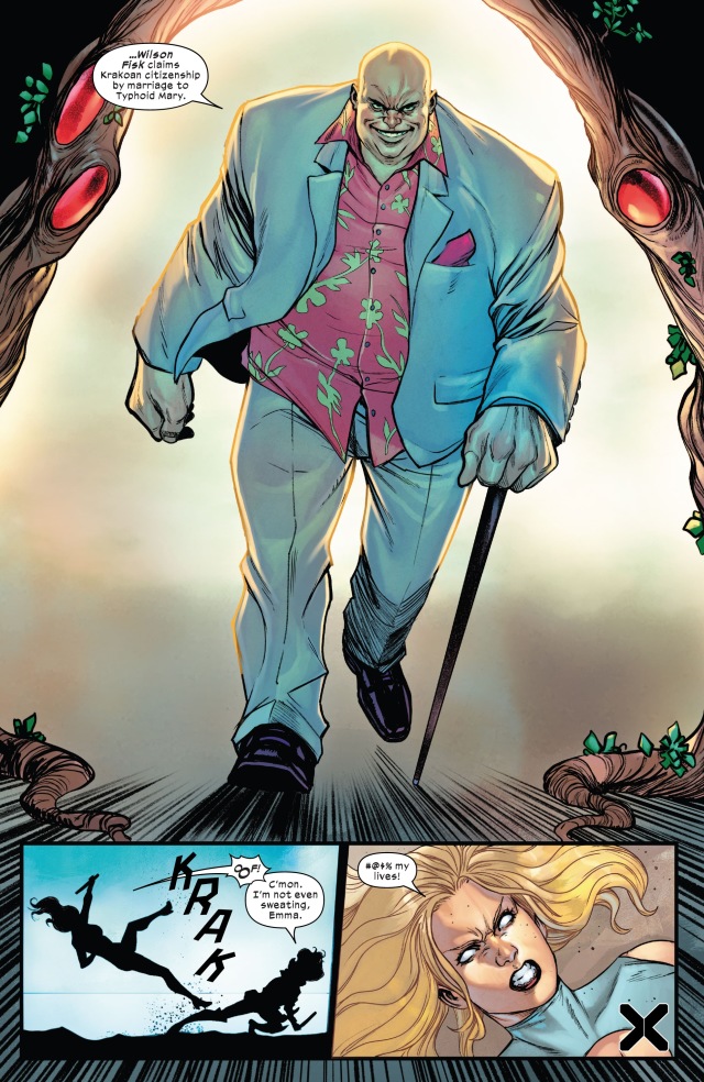 那人正是瑪莉的合法丈夫,威爾森‧費斯克(Wilson Fisk),又名金霸王(Kingpin)!而藉由他與瑪莉的婚姻,他希望同樣能夠獲取克拉科人的公民身分,從而獲得全世界執法機構的大赦!