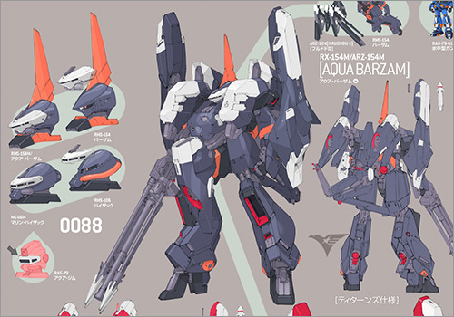 此商品與同步販售的『HG 1/144 漢摩拉比II水中型(A.O.Z RE-BOOT版)』差別僅有零件成形色,採用迪坦斯組織特徵的漆黑配色,能與另售的「HG 1/144 巴薩姆(A.O.Z RE-BOOT版)」結合,再現外觀被稱為「三叉戟」的巴薩姆水中型。