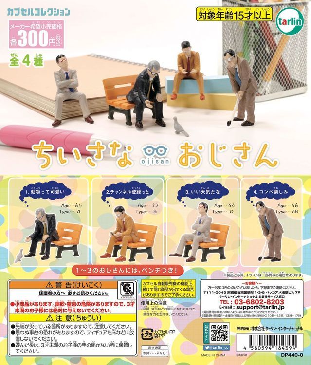 發行許多話題商品的玩具品牌 株式會社 Tarlin International (前 EPOCH 轉蛋事業部),將推出搞笑新作「小小歐吉桑」轉蛋,共有四種款式,參考售價為一轉 300 日圓,預計將於 2023 年 03 月開轉~
