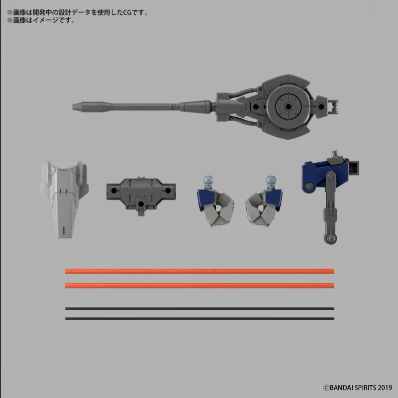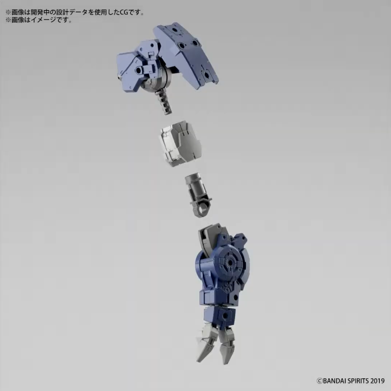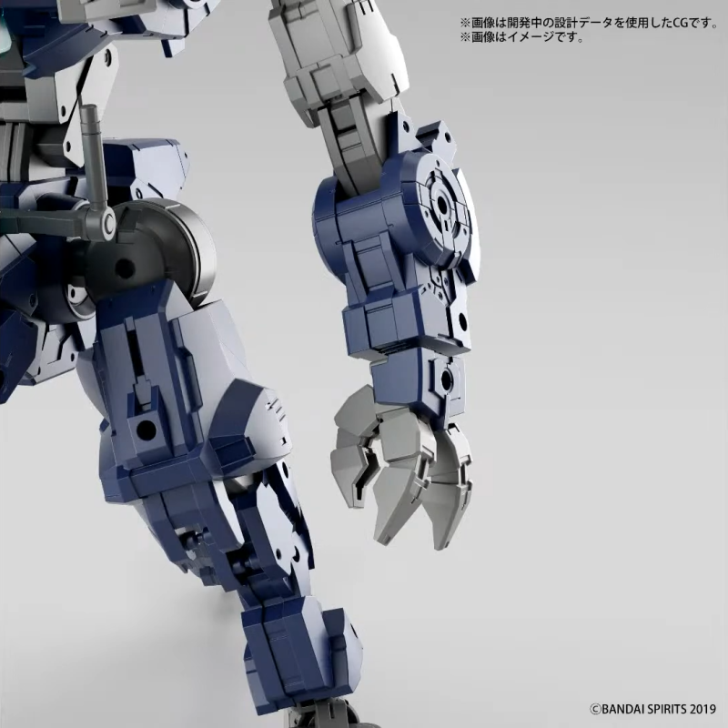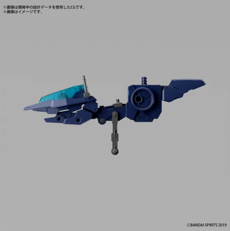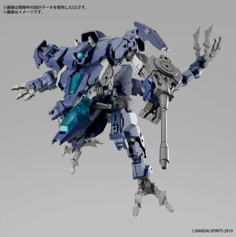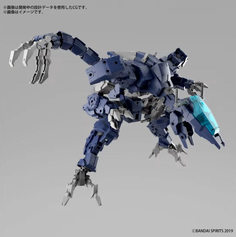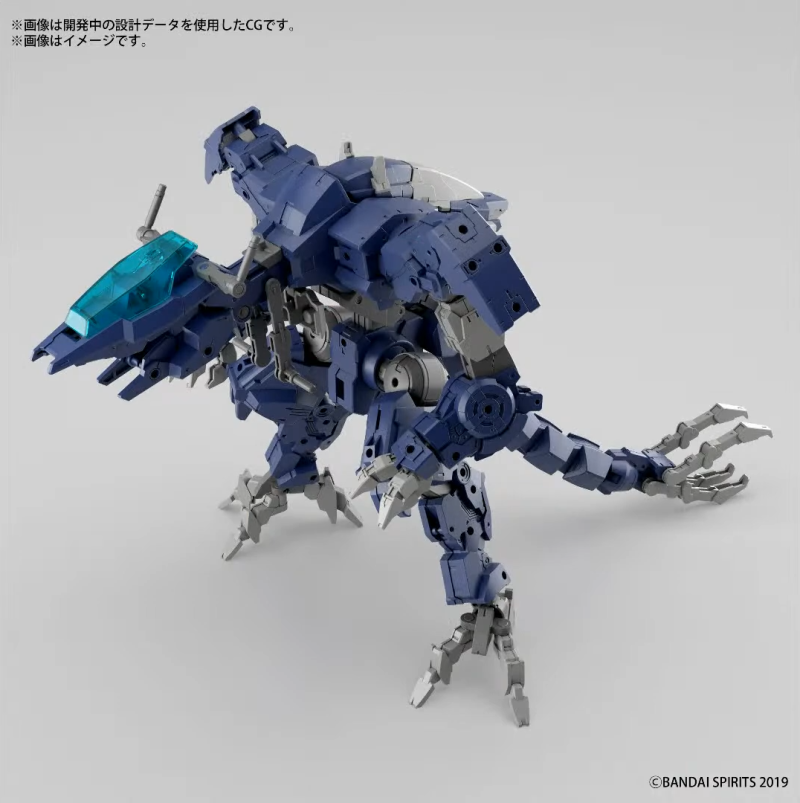 此機最為特色的就是能夠藉由替換零件方式,再現彷彿暴龍的帥氣造型。此外腰部也有著駕駛艙設計,能夠讓另售的 30MM、30MS 系列機體搭乘,組合出多樣的合體形態。此外全身多處也設置大量的 3mm 共通規格擴充孔,能夠運用另售的 30MM 專用擴充武裝大幅改造!