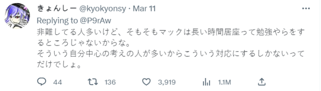 不過也有人反映,是因為太多人喜歡在麥當勞長時間待著或是念書,麥當勞或許只能用這種方式希望大家內用不要待這麼久。當然這會犧牲掉其他正常使用的消費者體驗,但這也不是沒原因的就是了。