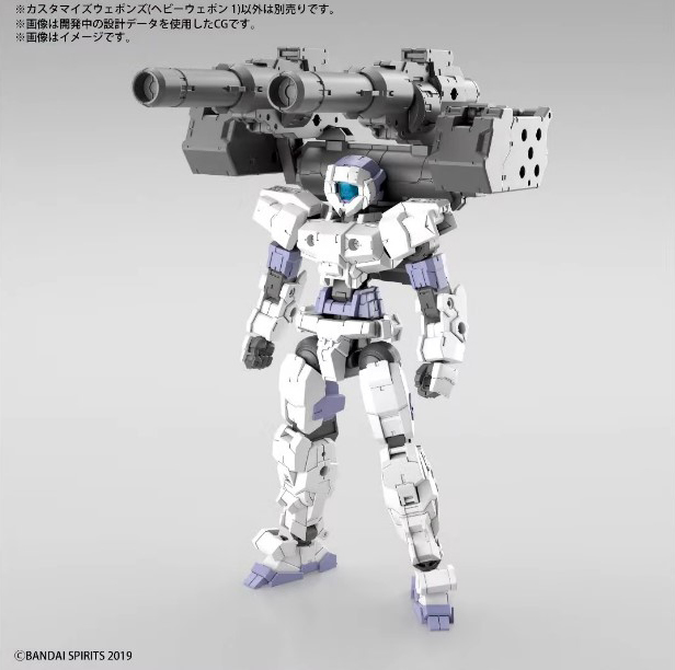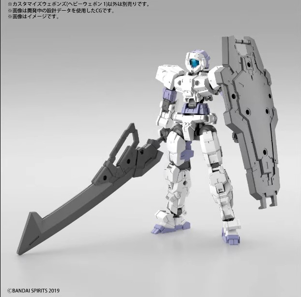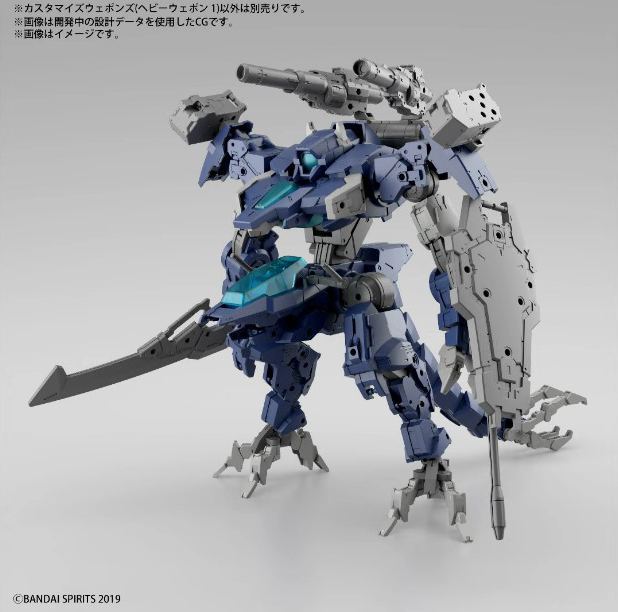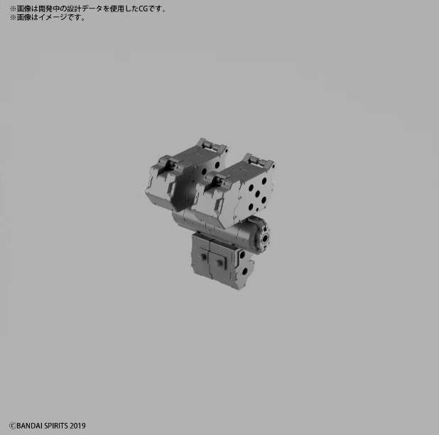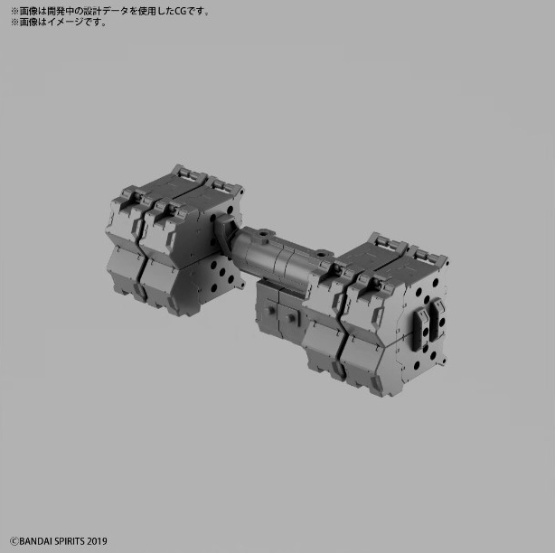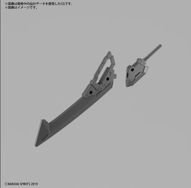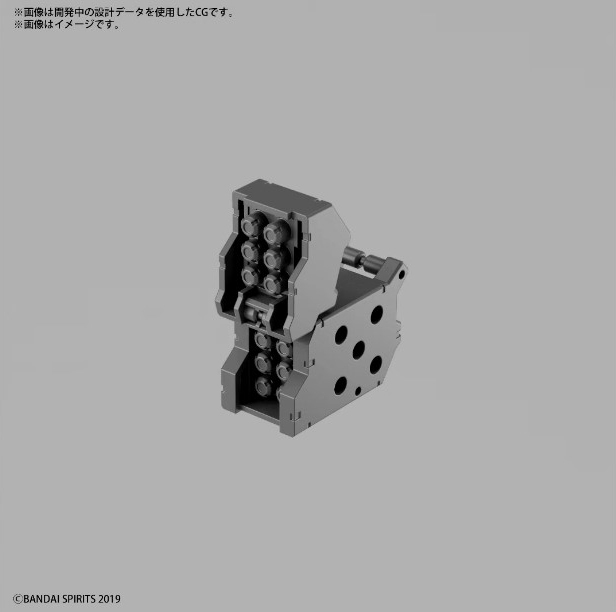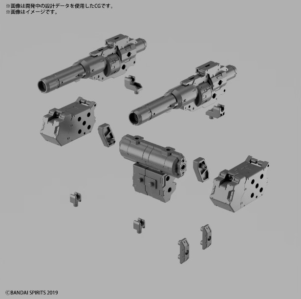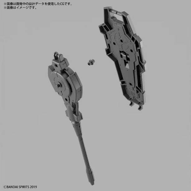 採用深灰成形色製作,包含背部基座、巨劍、盾牌、導彈發射器、肩部火砲、盾牌用火砲等零件,能夠搭配另售的 30MM 系列機體進行改裝。