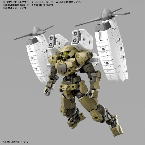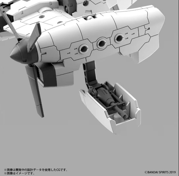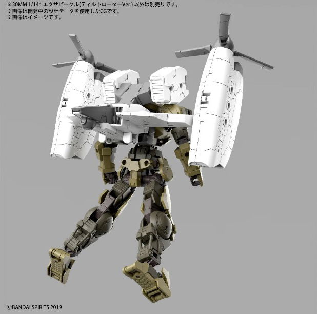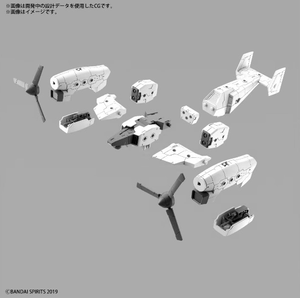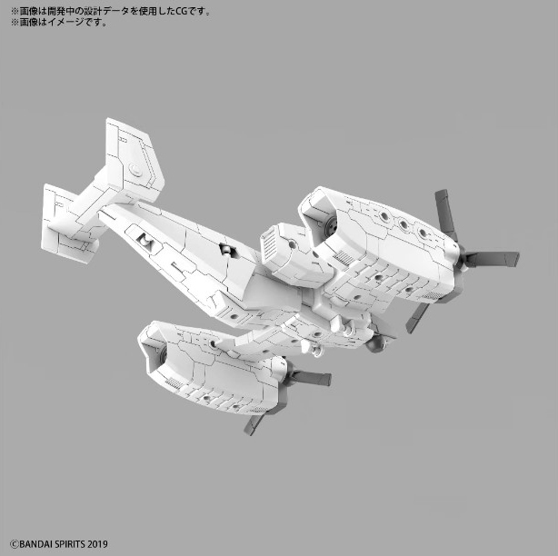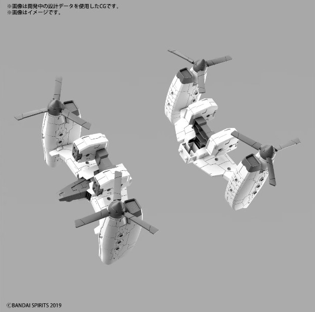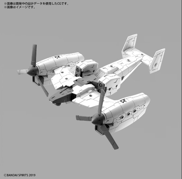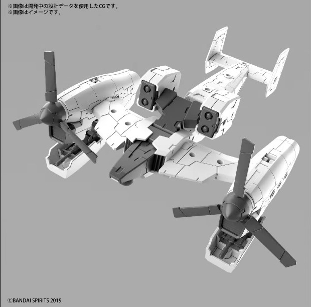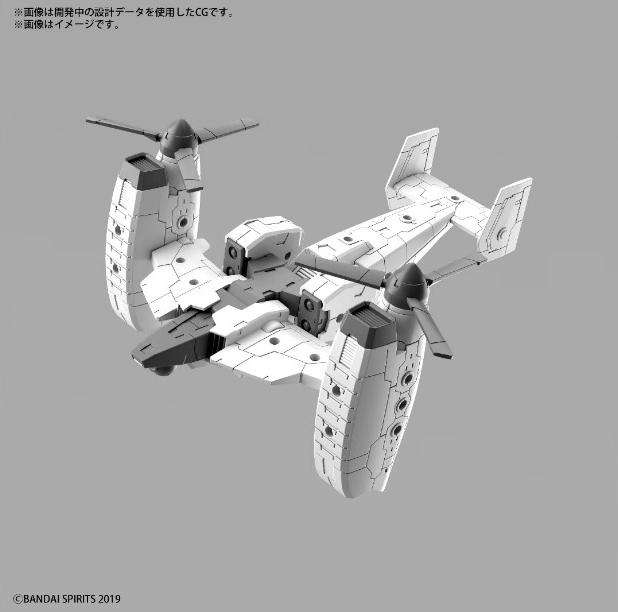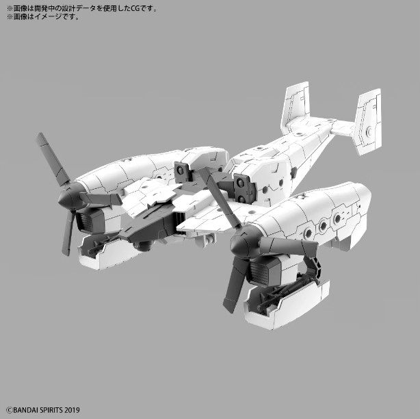 採用白、深灰零件組成的傾轉旋翼機,除了能夠單獨作為載具外,機身也能夠拆解成多個細部零件,成為另售 30MM 系列機體的改裝零件。此外運用複數傾轉旋翼機便能組合出更多樣的形態變化。