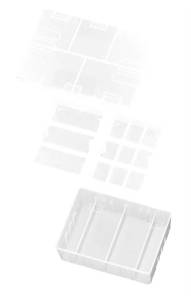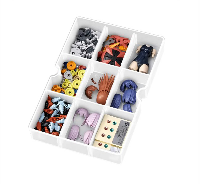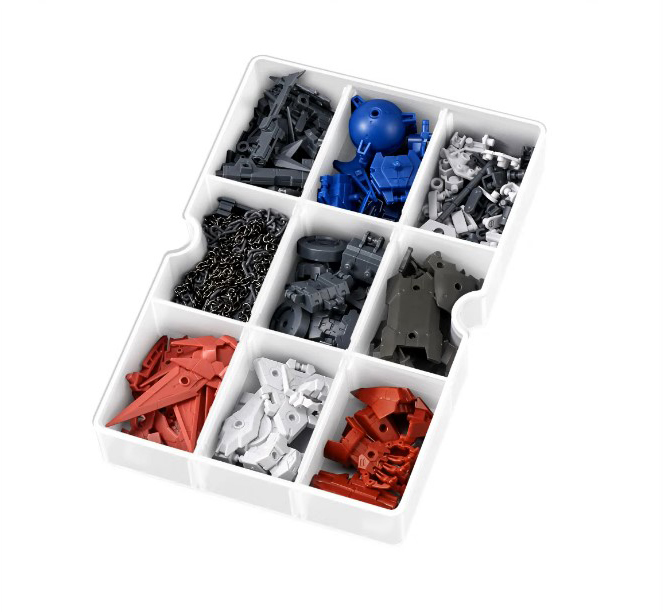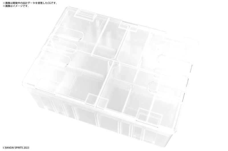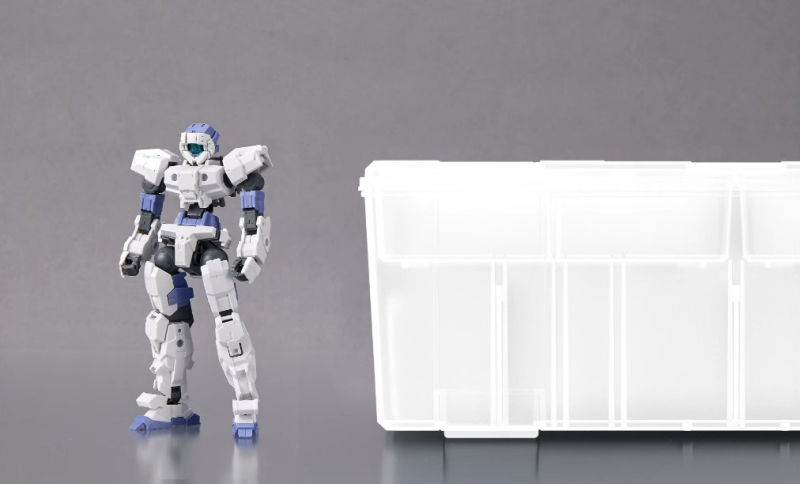 底座、收納盒、上蓋為分離式設計的大型收納盒,超大容量的設計能夠收納一般尺寸的多個 30MM、30MS 系列機體,或是各種替換改裝零件、模型製作工具。