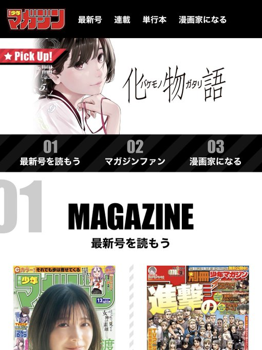改編自西尾維新同名輕小說系列,由大暮維人繪製的《化物語》漫畫版,在本周發行的最新一期《週刊少年Magazine》迎來最終話,結束五年多來的連載。而本期的《週刊少年Magazine》之中,也特別邀請了人氣 Coser - えなこ(Enako)來扮演化物語中的角色,也算是特別慶祝漫畫完結篇。