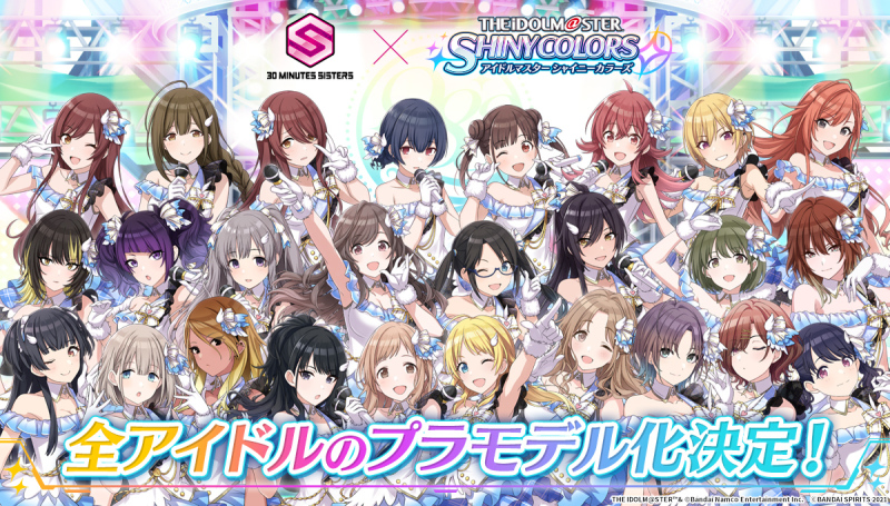 由日本 BANDAI SPIRITS 公司 HOBBY 事業部推出的原創機娘主題組裝模型『30 MINUTES SISTERS』系列宣佈將與遊戲《偶像大師閃耀色彩》展開合作,未來將藉由 30MS 系列素體推出一系列以遊戲中偶像角色為主題的組裝模型商品!