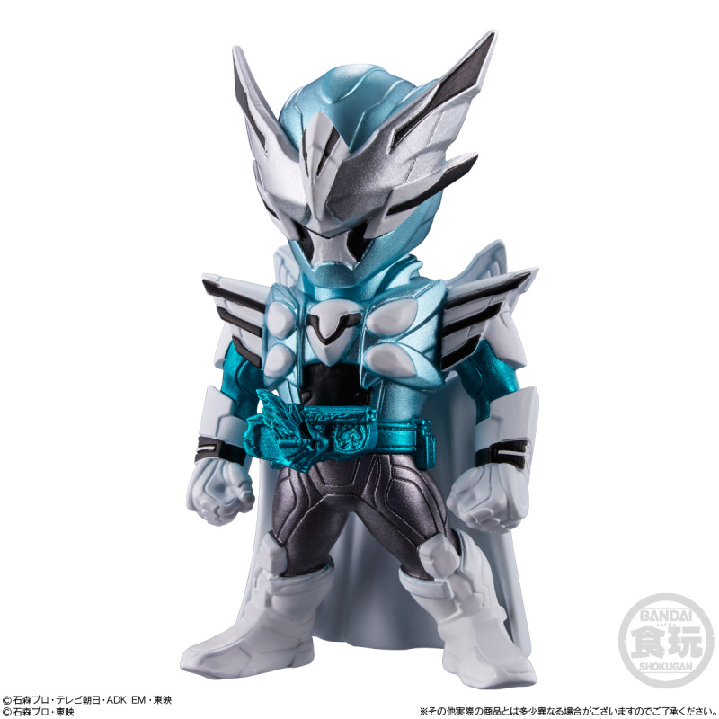暢銷食玩『CONVERGE KAMEN RIDER』將歷代登場假面騎士角色製作成全高約 5.5 公分的 2.5 頭身造型,雖是低頭身比例但依舊刻畫出各騎士帥氣的頭部、裝甲與腰帶造型,藉由豐富的色彩塗裝、透明零件還原劇中形象,每款商品也附有相同規格的台座可用來輔助站立和展示。