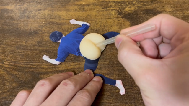 把貼紙貼到屁股上,然後用吸管戳個洞。