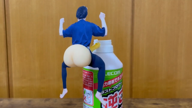 然後拿噴霧罐塞進去,就可以作出放屁的聲音 ( ? )