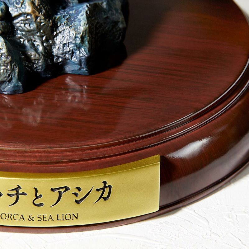 「NATURE TALES 虎鯨與海獅」採用能夠大幅再現原型細節的 POLYSTONE 材質複製而成,擁有全高約 42 公分的大尺寸。造型雕塑出一隻巨大的雄性虎鯨正在獵捕海獅,而嬌小靈活的海獅則潛入礁石的死角躲避虎鯨的追捕,兩種動物都擁有栩栩如生的造型,透過色彩塗裝再現虎鯨背部的S形斑紋、海獅富有靈魂的眼神,甚至將虎鯨腹部的生殖裂、海獅頭部兩側的耳朵等平時不會注意到的細節徹底再現!
