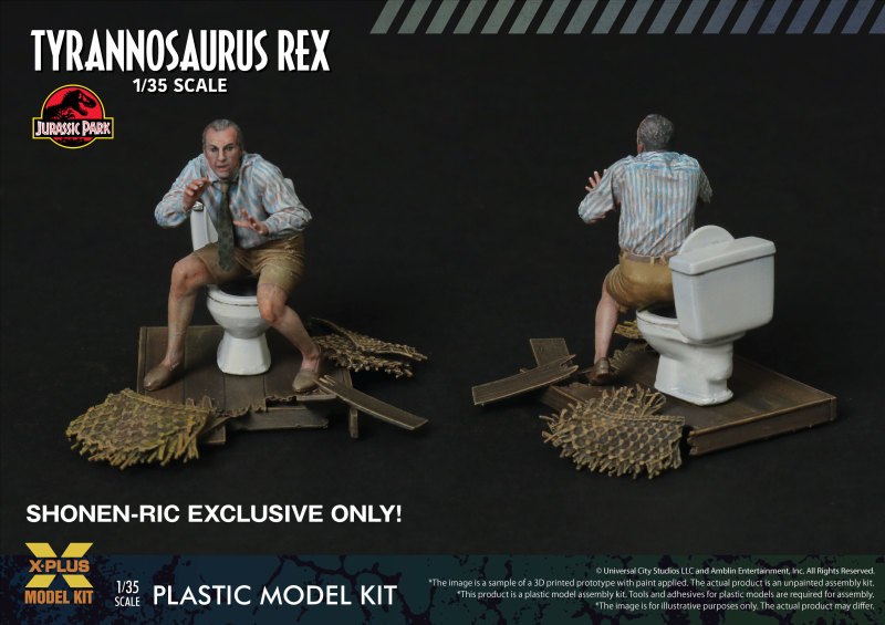 值得一提的是,X-PLUS 官方商店「少年RIC」販售的限定版更將那位躲在廁所的男人「唐諾·卓那羅」一併附上,重現他即將被霸王龍一口吞下的驚嚇場面。