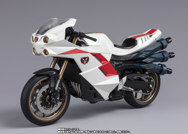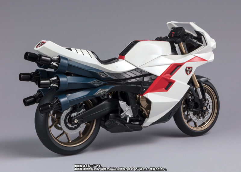 「S.H.Figuarts 旋風號 (新・假面騎士)」,尺寸全長約 18 公分,再現新劇場版中重新設計的假面騎士專屬機車-旋風號(Cyclone)造型,特色的四頭燈與擋風玻璃使用了透明零件呈現,並精密還原車身各部分的細節、紋理以及經典的立花機車俱樂部 LOGO 等,在車輪框與六支排氣管等處施以質感的金屬色澤,並可以透過替換的排氣管零件再現假面騎士2號騎乘飆風的帥氣模樣!