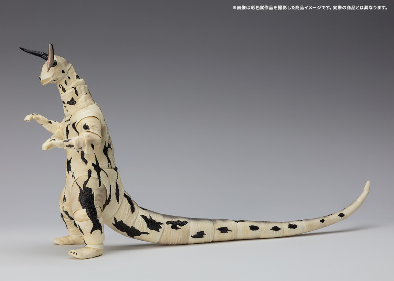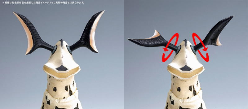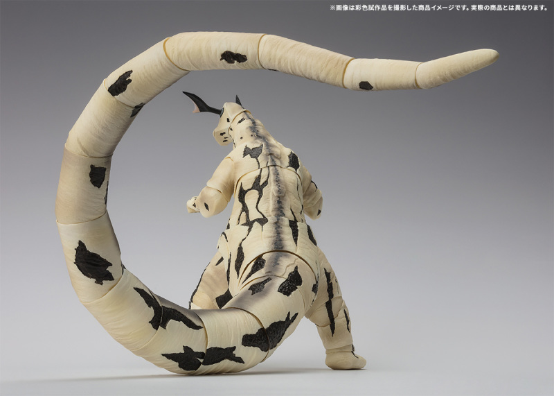 在可動部分全身都有靈活而不破壞造型完整性的設計,能夠把玩各個主要關節再現劇中場景,特別尾巴部分也再現了超長的尺寸,並埋入多段可動關節能夠靈活彎曲,透過替換零件更能再現用尾巴將敵人捆綁起來電擊的動作,搭配另售的超人力霸王七號本體進行捆綁就能再現劇中戰鬥名場景!