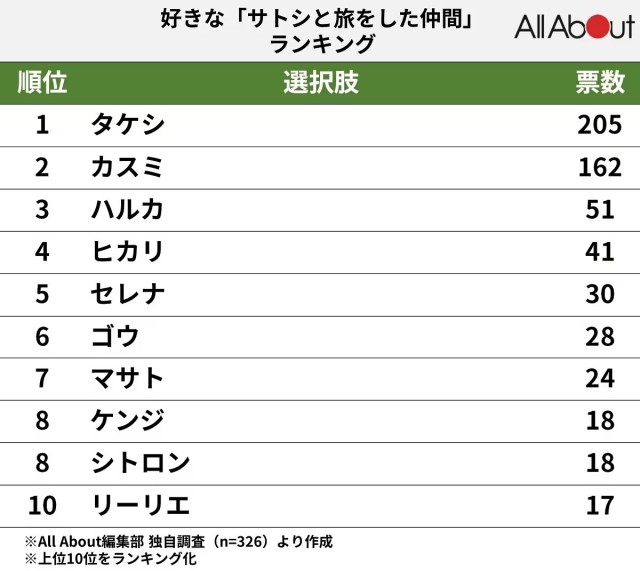 那除了小智以外,你最喜歡的角色又是誰呢?事實上,日前日本媒體《All About》在日前就針對326名,年紀落在10歲至60歲的男、女讀者進行「最喜歡哪位跟小智一起旅行的夥伴」問卷調查,並且從結果當中列出了排名。