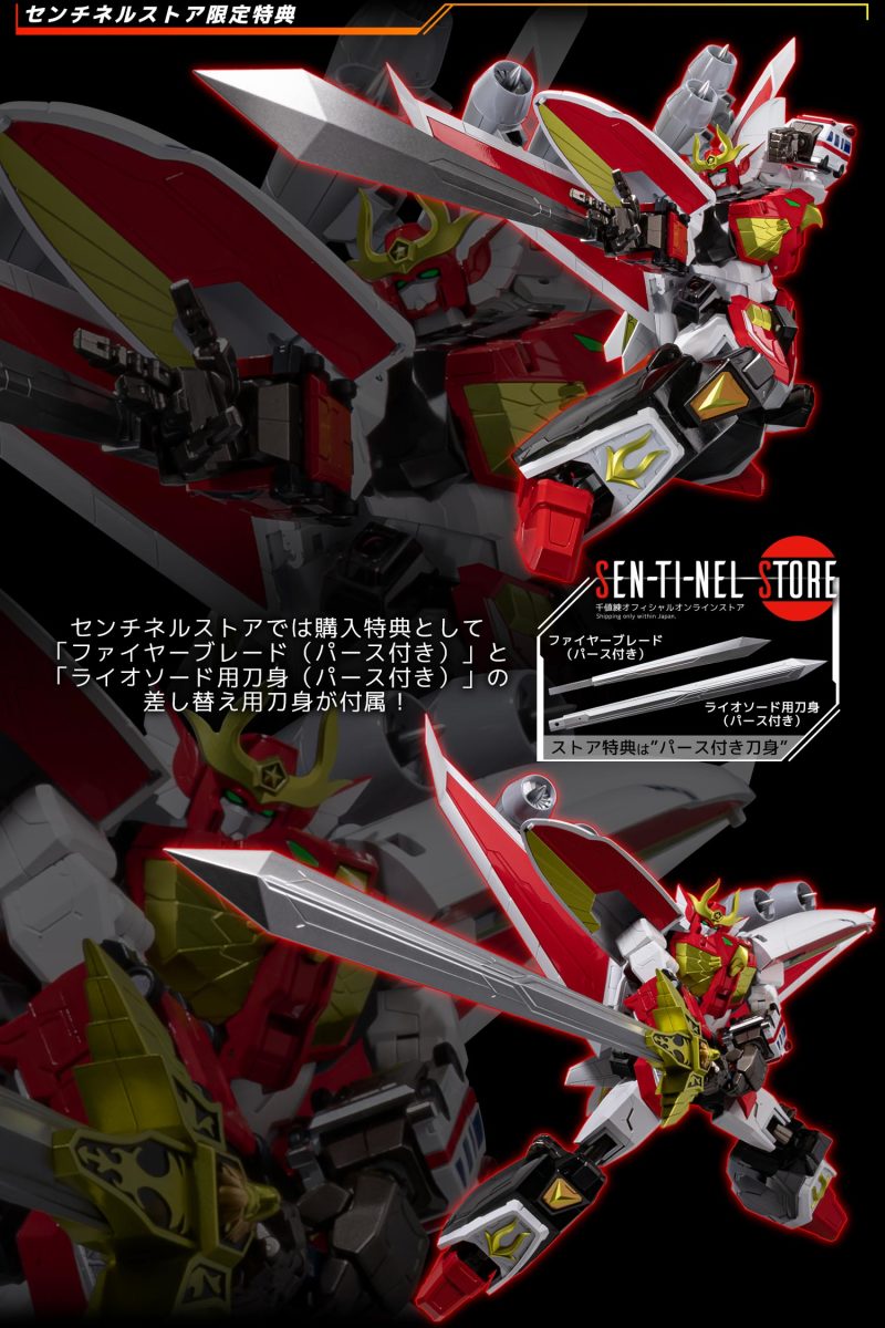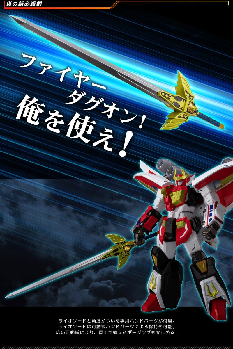 此外於千值練官方商店購買此商品,還能獲得限定特典「勇者架勢用火焰劍・狂獅劍劍身」,再現動畫中充滿張力的勇者架勢構圖!同時千值練也預告日後將推出《勇者指令》第二彈商品「METAMOR-FORCE 威力達古王」,能夠與火焰達古王進一步合體成最強形態超級火焰達古王!
