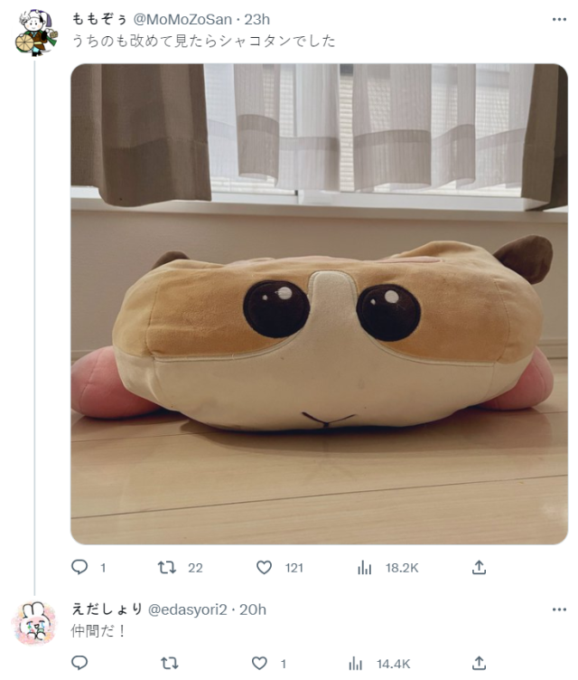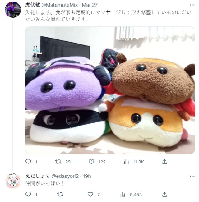 不知道各位電電夥伴有收藏抱墊娃娃的喜好嗎 ? 不論你是直接購買還是從夾娃娃機入手,放在家裡總是有種療癒又有佈置的感覺。不過最近日本推特網友們有個趣味的分享,他們紛紛分享了自家「扁掉的天竺鼠車車娃娃」的照片,看起來有點可憐又可愛,卻讓一堆網友都貼出自家的扁 PUI PUI,成為一個有趣的推特趨勢。