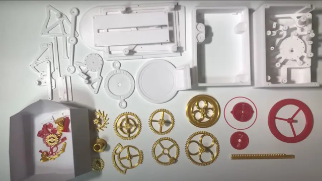 可以看到零組件非常多,精心設計才能打造免電池的動力計時器。